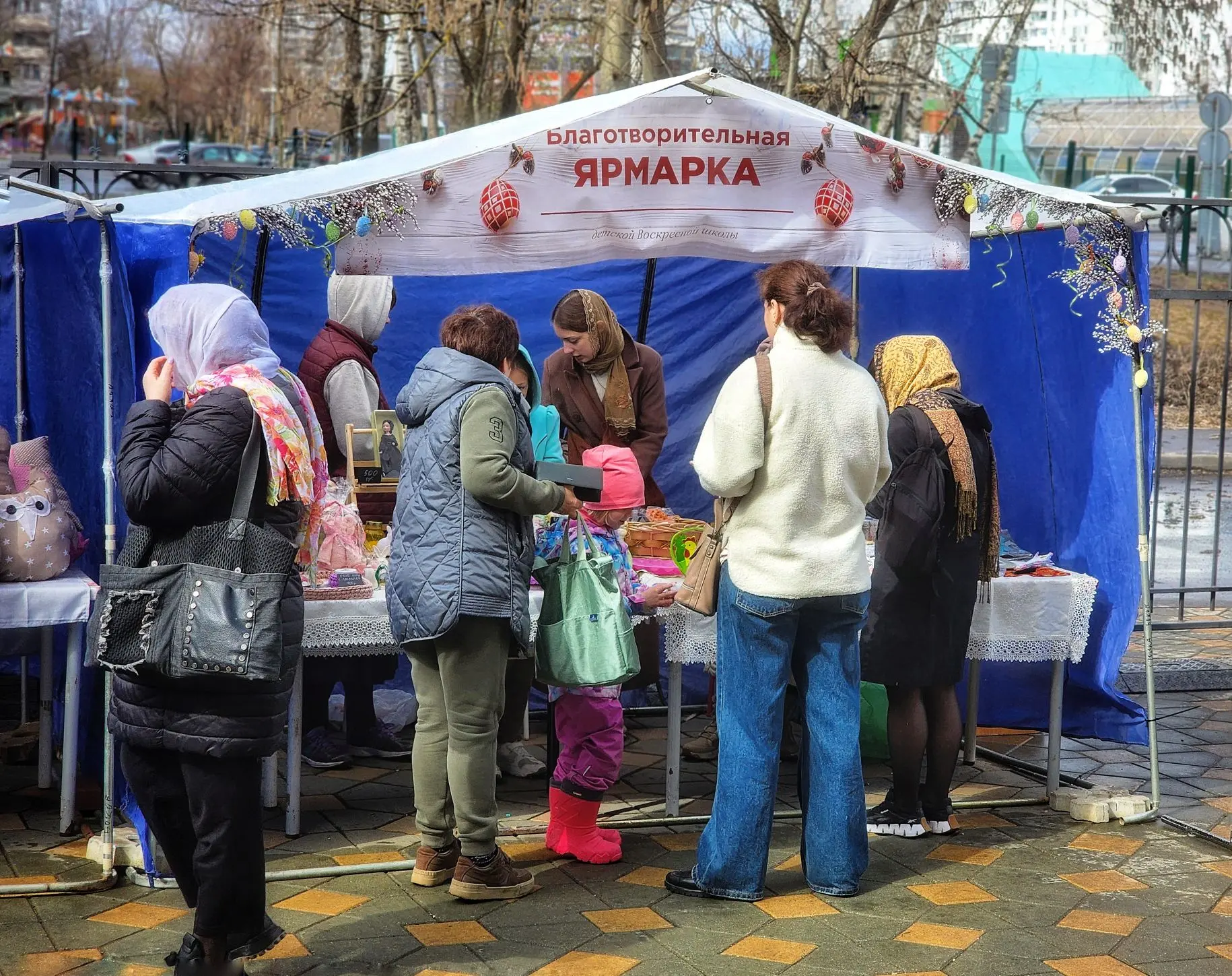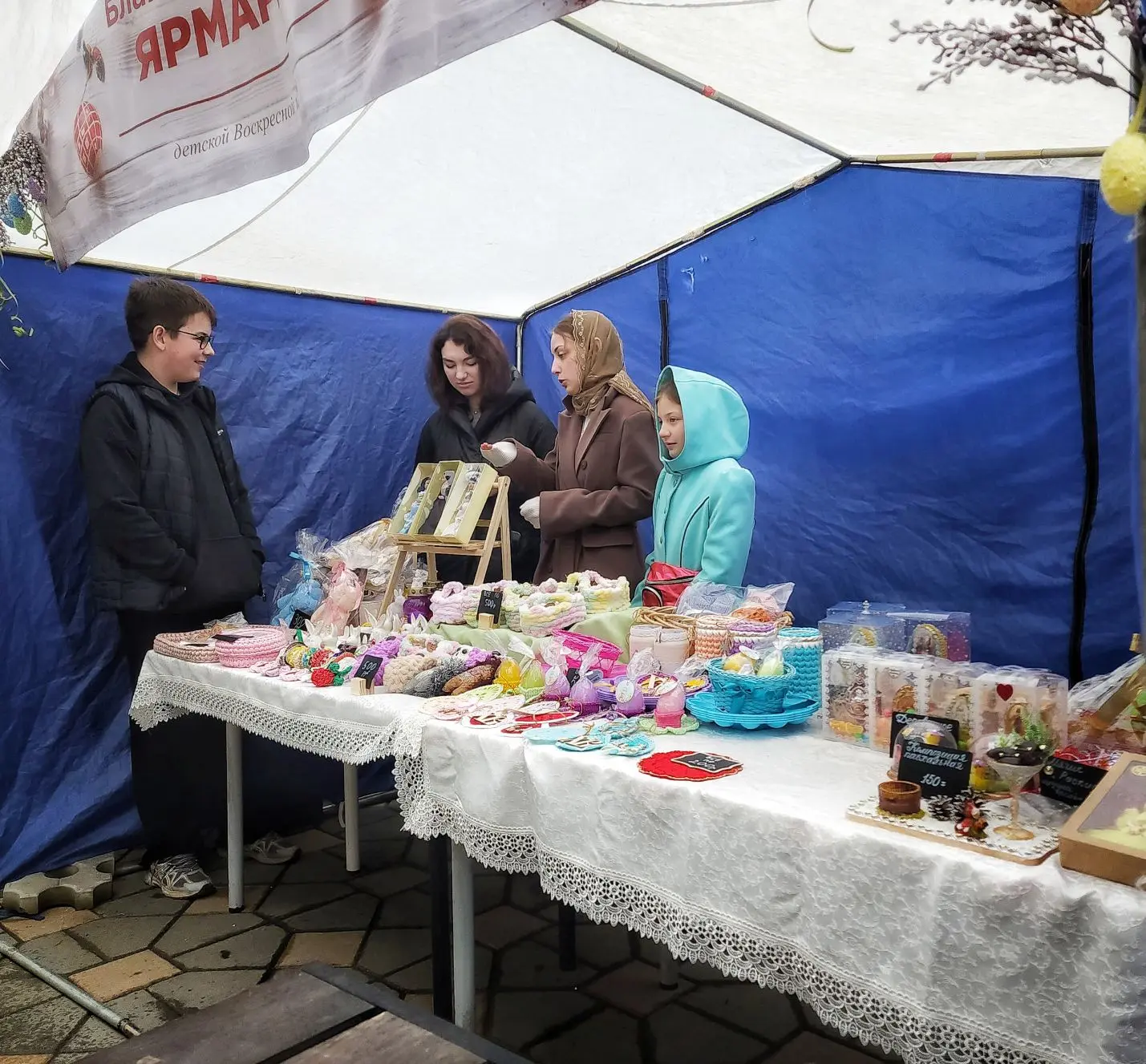 После поздней литургии состоялась благотворительная ярмарка, организованная нашей детской воскресной школой. На ней были представлены лоты, которые пожертвовали прихожане храма и родители школы.