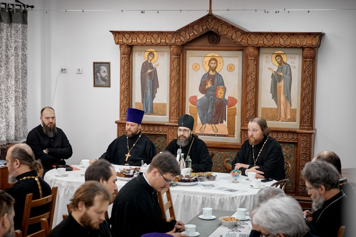 В тот же день в приходском доме храма под председательством архиепископа Саввы прошла встреча с ответственными за миссионерскую и катехизаторскую деятельность на приходах Северо-Западного викариатства. В мероприятии, объединившем более 30 участников, от нашего храма приняли участие: руководитель миссионерско-катехизаторского отдела при храме иерей Александр Сухоруков, Дмитрий Захаркин — руководитель Миссионерского общества во имя мученика Николая Варжанского, а также катехизатор Павел Кузнецов.