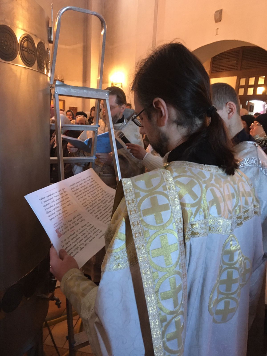 В нашем храме также состоялись торжественые праздничные богослужения, затем - освящение воды Великим чином, а после освящения воду раздавали всем пришедшим. У входа в храм миссионеры нашего храма проводили акцию, раздавали литературу и беседовали с приходящими о смысле праздника.