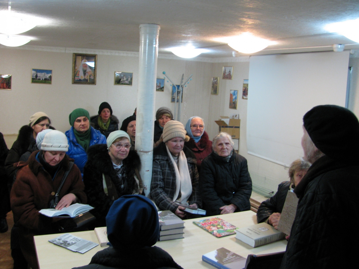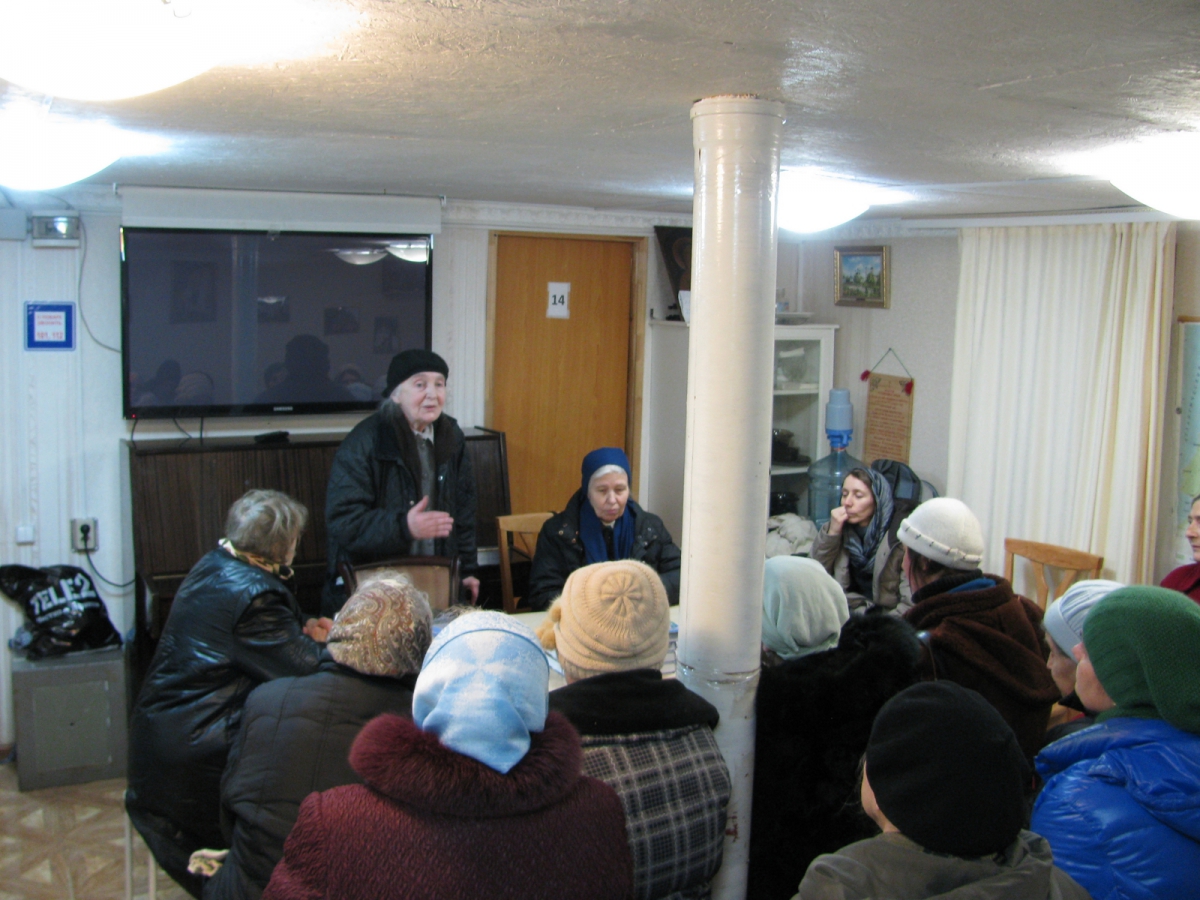 Мария Васильевна рассказывала о праведном Алексие Южинском, частицу мощей которого вместе с иконой святого она передала в дар нашему храму. Так же в дар собравшимся предлагалась книга об этом святом и о женском монастыре Бюсси-ан-от во Франции, где находится рака с мощами прав. Алексия. Книгу о русском монастыре на французской земле, о жизни русских эмигрантов в Южине и о служении иерея Алексия Медведкова, о его кончине и обретении нетленными мощей написала именно Мария Васильевна. Наша община с благодарностью приняла святыню и подарки.