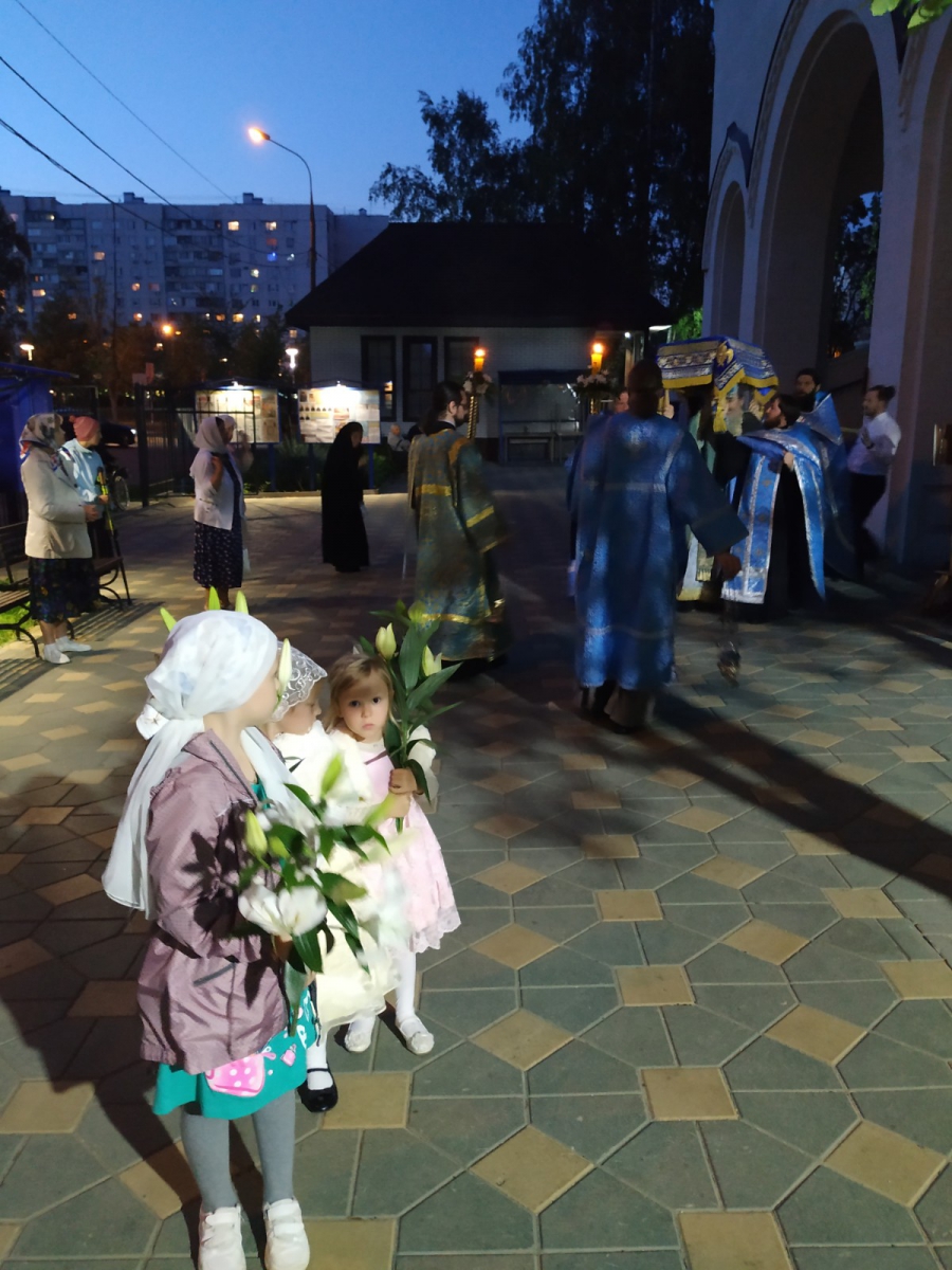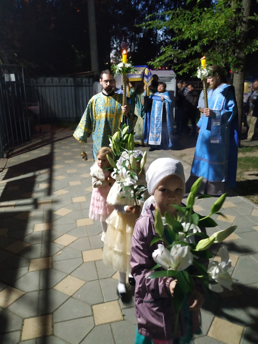 29 августа вечером состоялось Всенощное бдение с особым чином погребения Божией Матери, когда читались особые песнопения "похвалы", а на великом славословии состоялся крестный ход вокруг храма с плащаницей.
