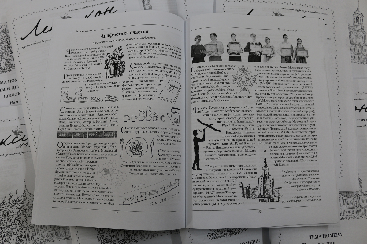 Понятно, что имея такой обширный гуманитарный «багаж» за спиной, учителя и ученики просто не могли не создать свой журнал. Сколько всего интересного происходило в прошлом и происходит прямо сейчас на рождественской земле! Об этом каждый желающий может прочесть в «школьном журнале для семейного чтения «Лексикон», как значится на его обложке.