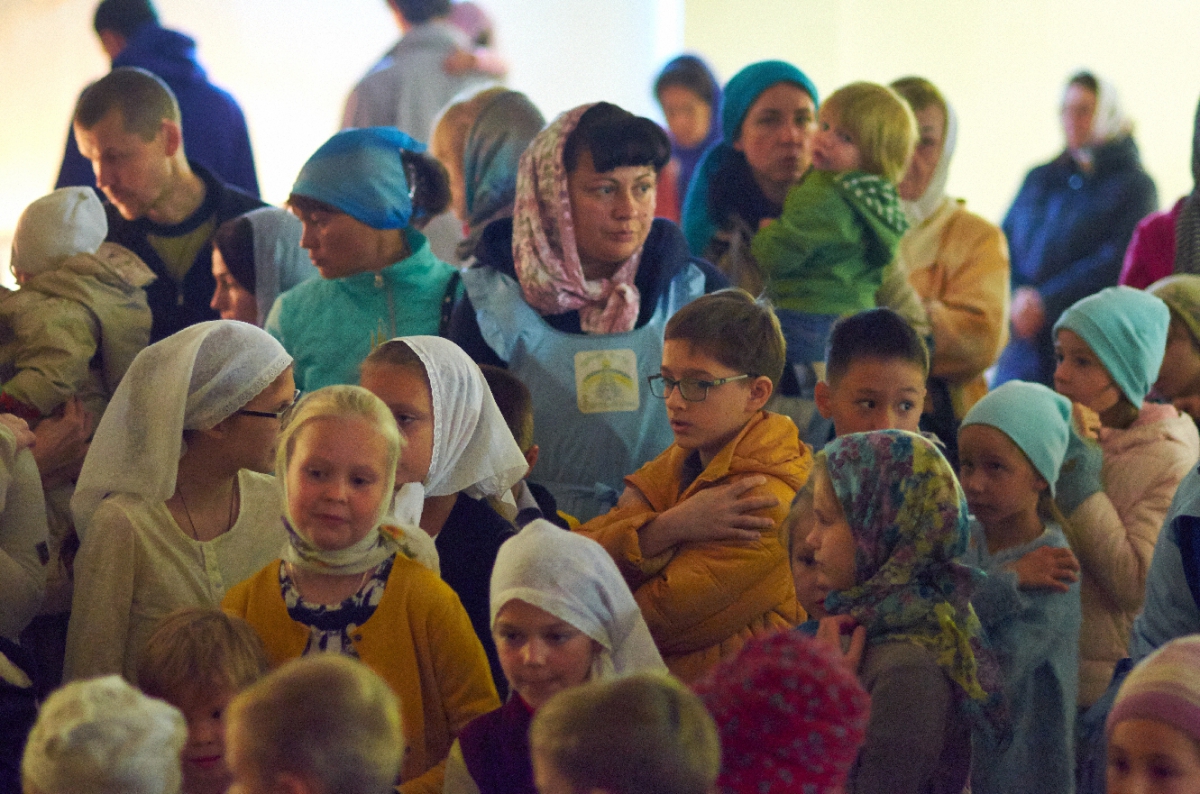 Мальчики постарше помогают в алтаре и читают Часы. На амвон выходит священник о. Сергий (Сергей Аюпов) и беседует с ребятами перед службой.