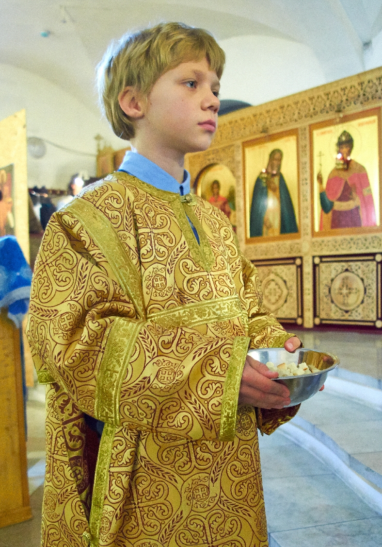 После «Отче наш...!»" алтарник Сергей Демидов читает из пролога историю о благочестивой матери. Чтобы ни делал, чтобы ни говорил, чтобы ни подумал, нужно всегда мысленно видеть перед собой Господа, и тогда всякое дурное неприемлемо будет совершить.