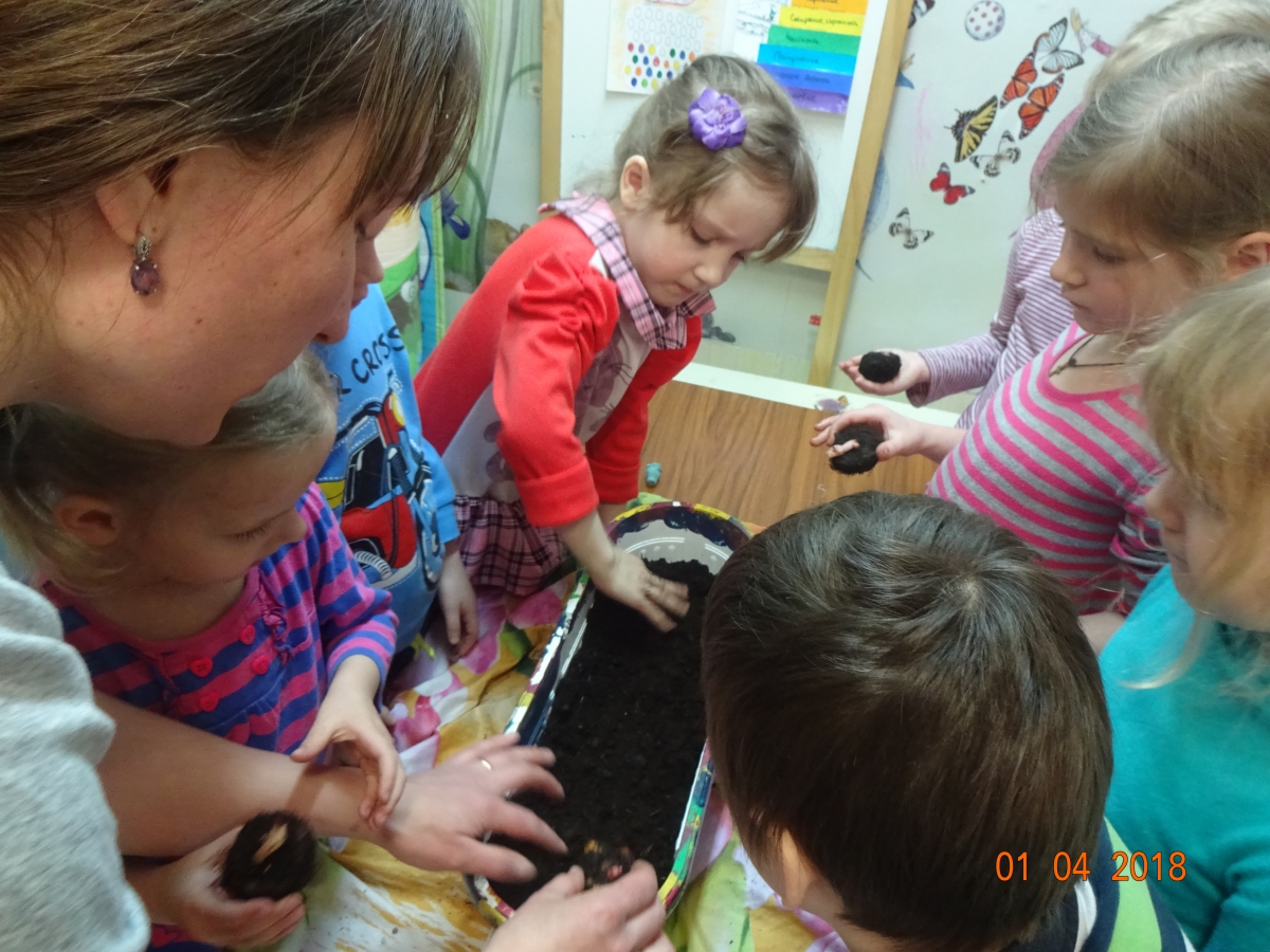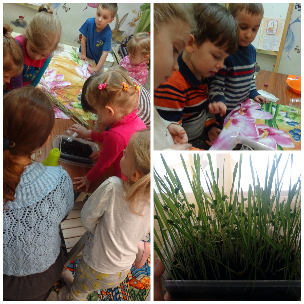 Посеяны с детьми злаки, луковичные цветы в подарок батюшкам.