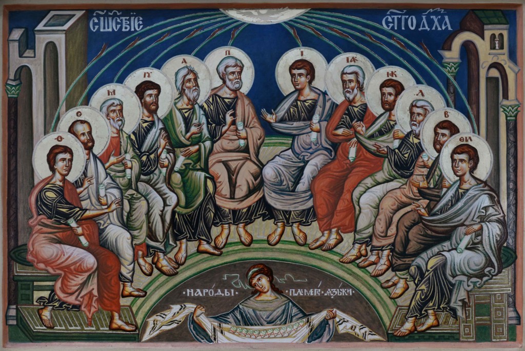 В этот двунадесятый праздник воспоминается и прославляется сошествие Святого Духа на апостолов в виде огненных языков (Деян. 2, 1-4).