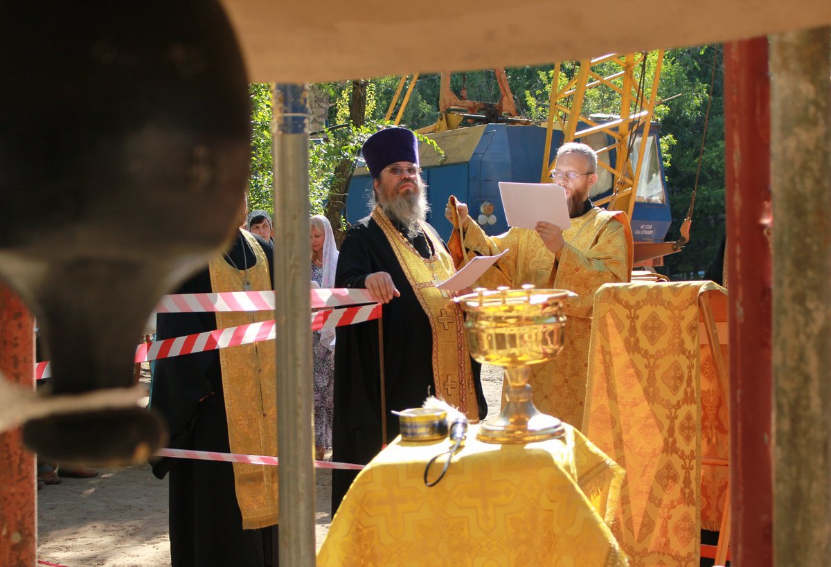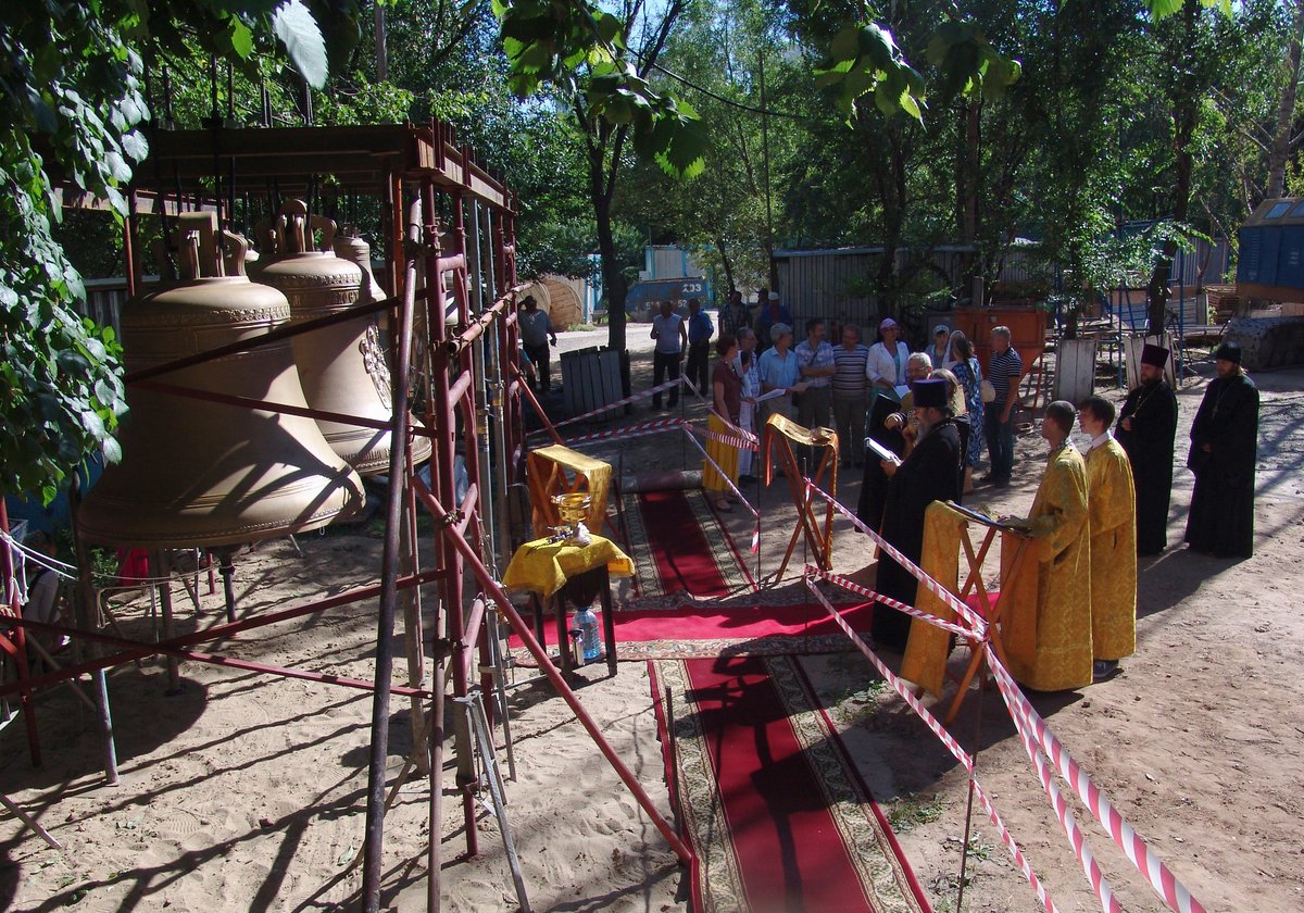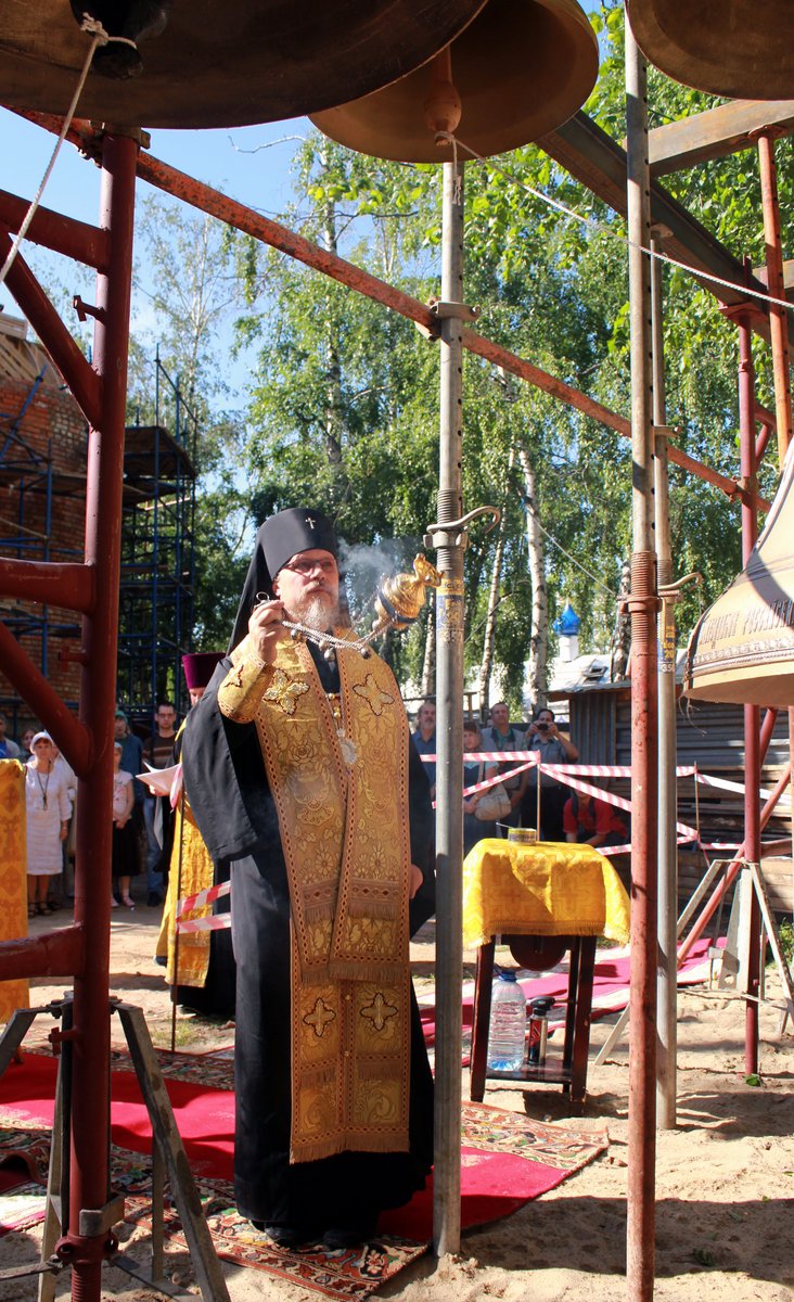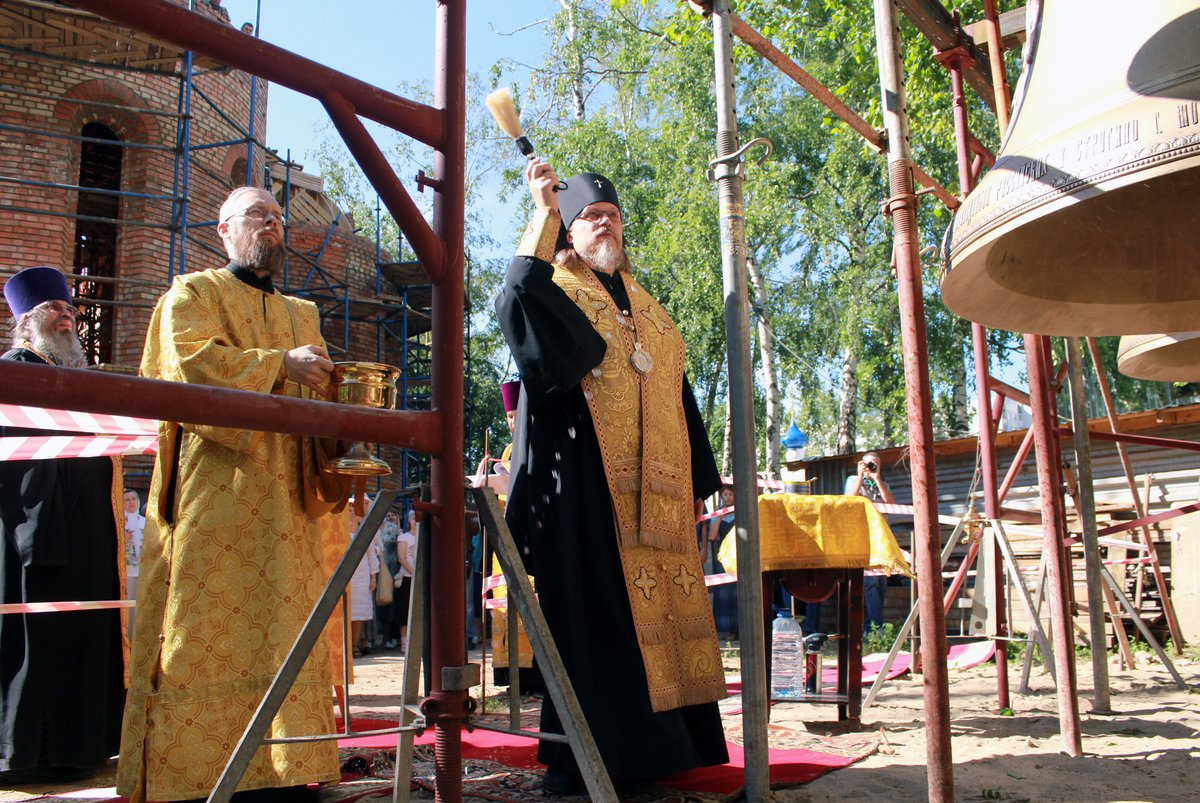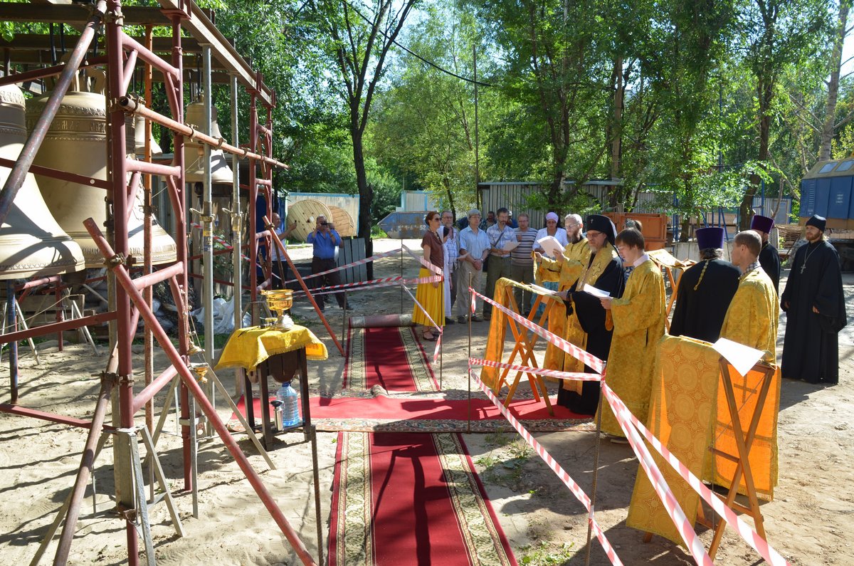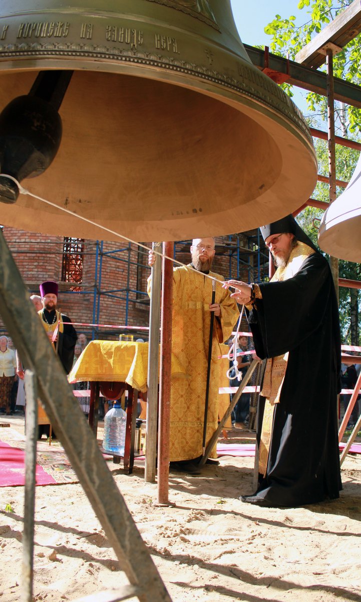 12 июля, в субботу, на праздник первоверховных апостолов Петра и Павла, в нашем храме состоялось долгожданное событие. После долгих месяцев ожиданий на территорию строящегося каменного храма привезли и освятили 7 больших колоколов.