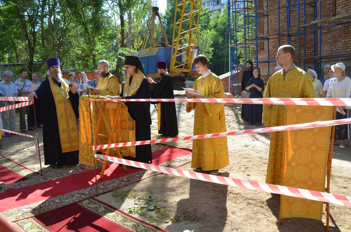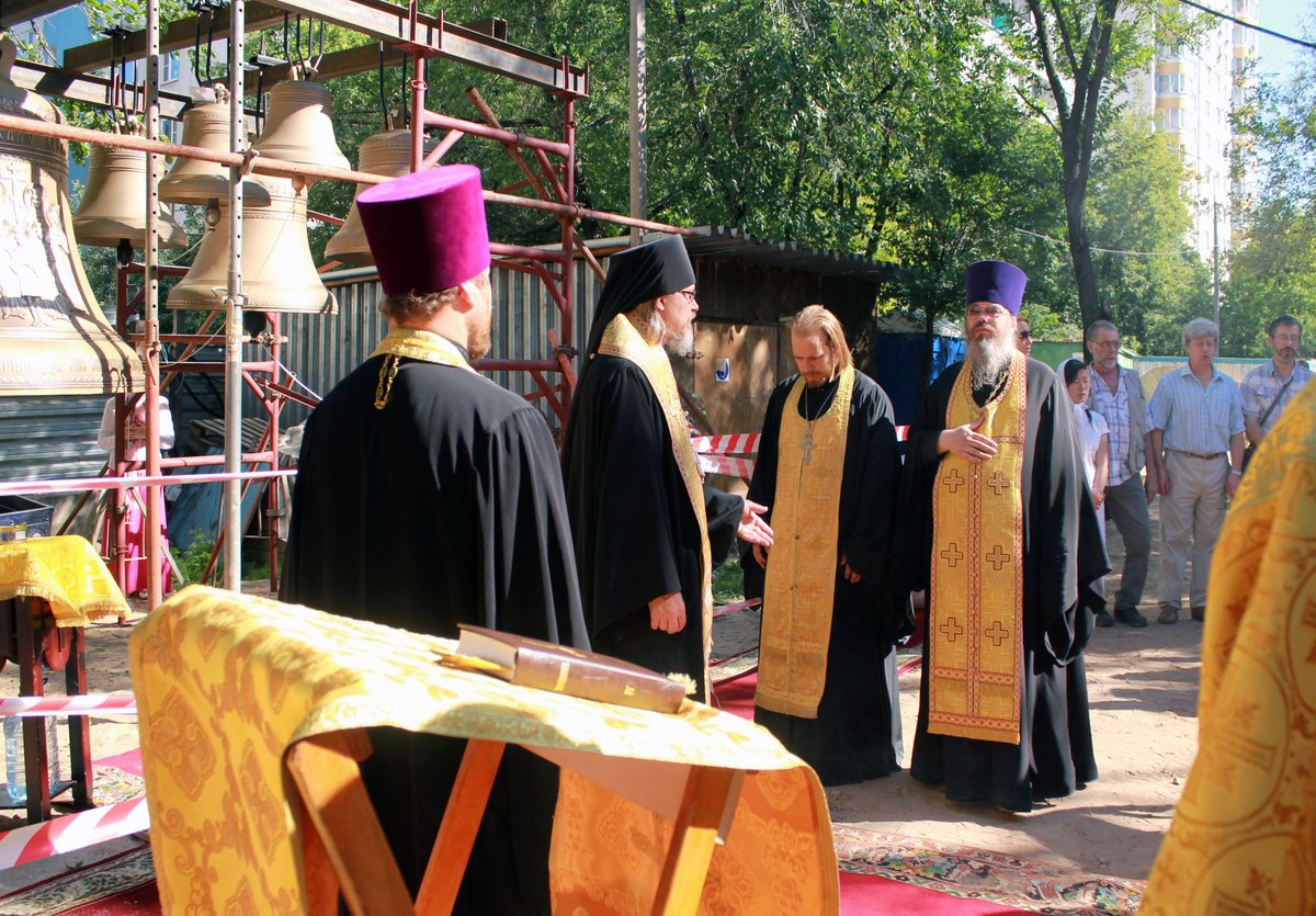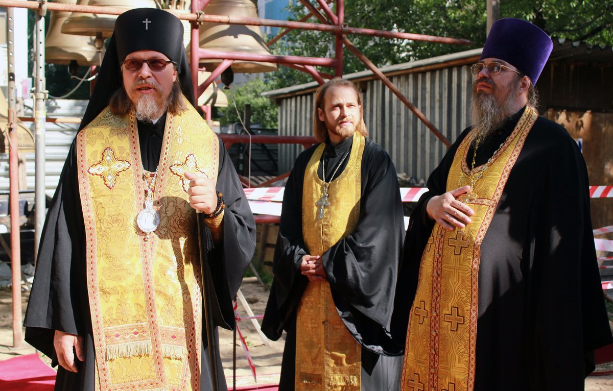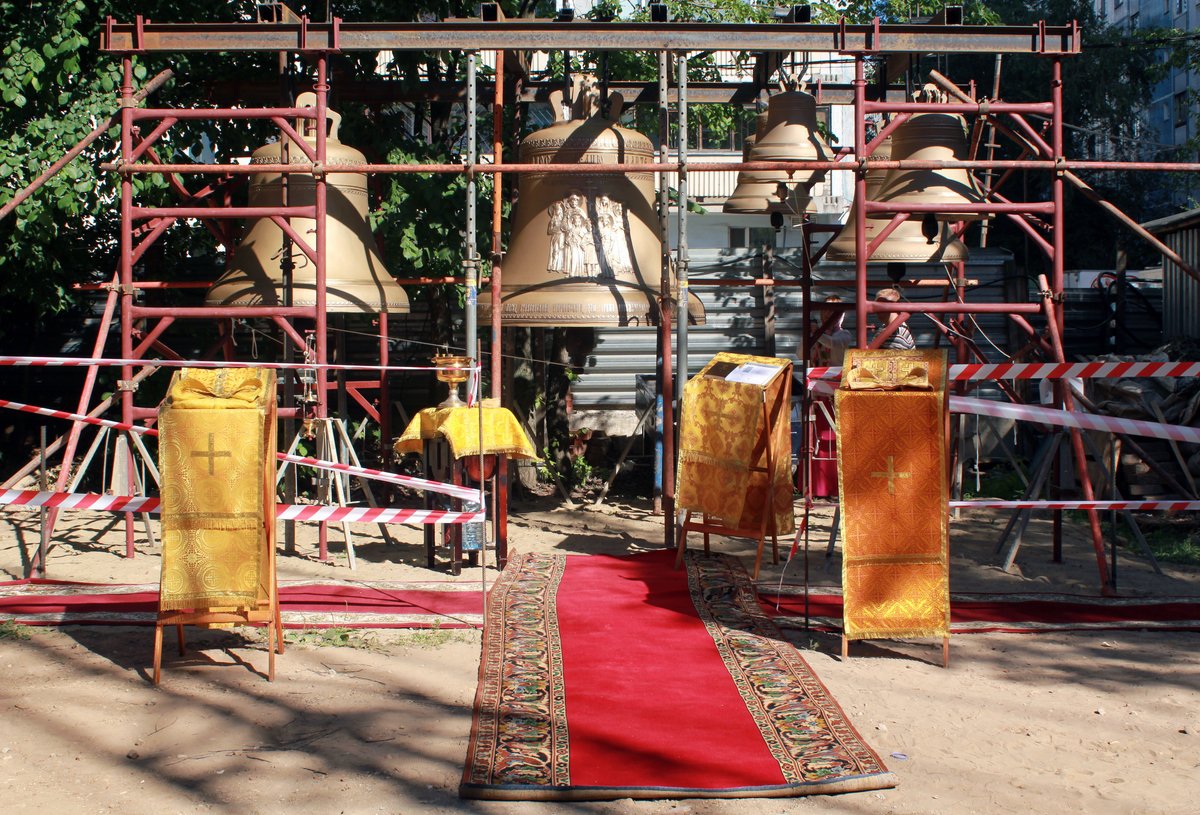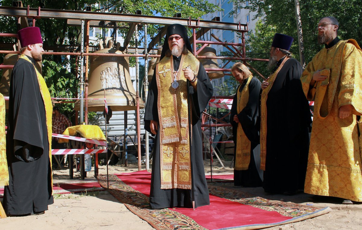12 июля, в субботу, на праздник первоверховных апостолов Петра и Павла, в нашем храме состоялось долгожданное событие. После долгих месяцев ожиданий на территорию строящегося каменного храма привезли и освятили 7 больших колоколов.