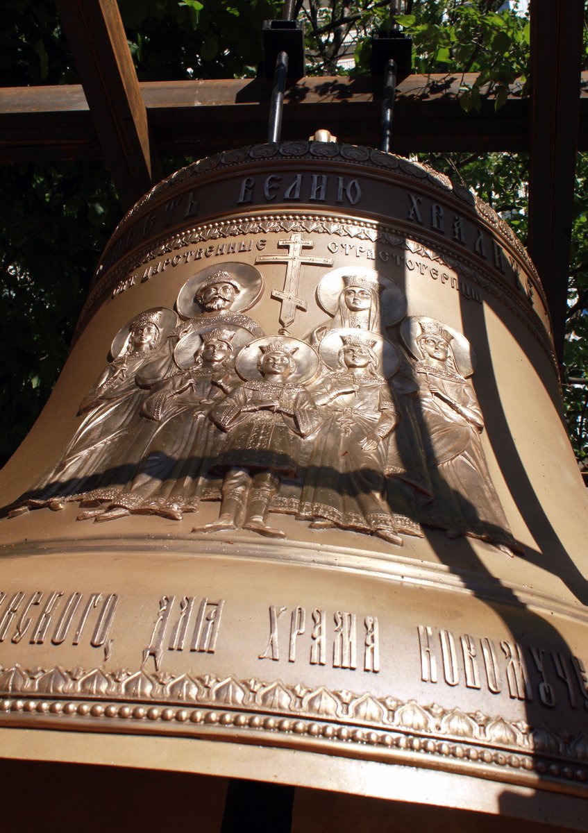 На самом большом из колоколов изображена икона святых царственных Мучеников, день памяти которых (17 июля по н.с.) является нашим престольным праздником.