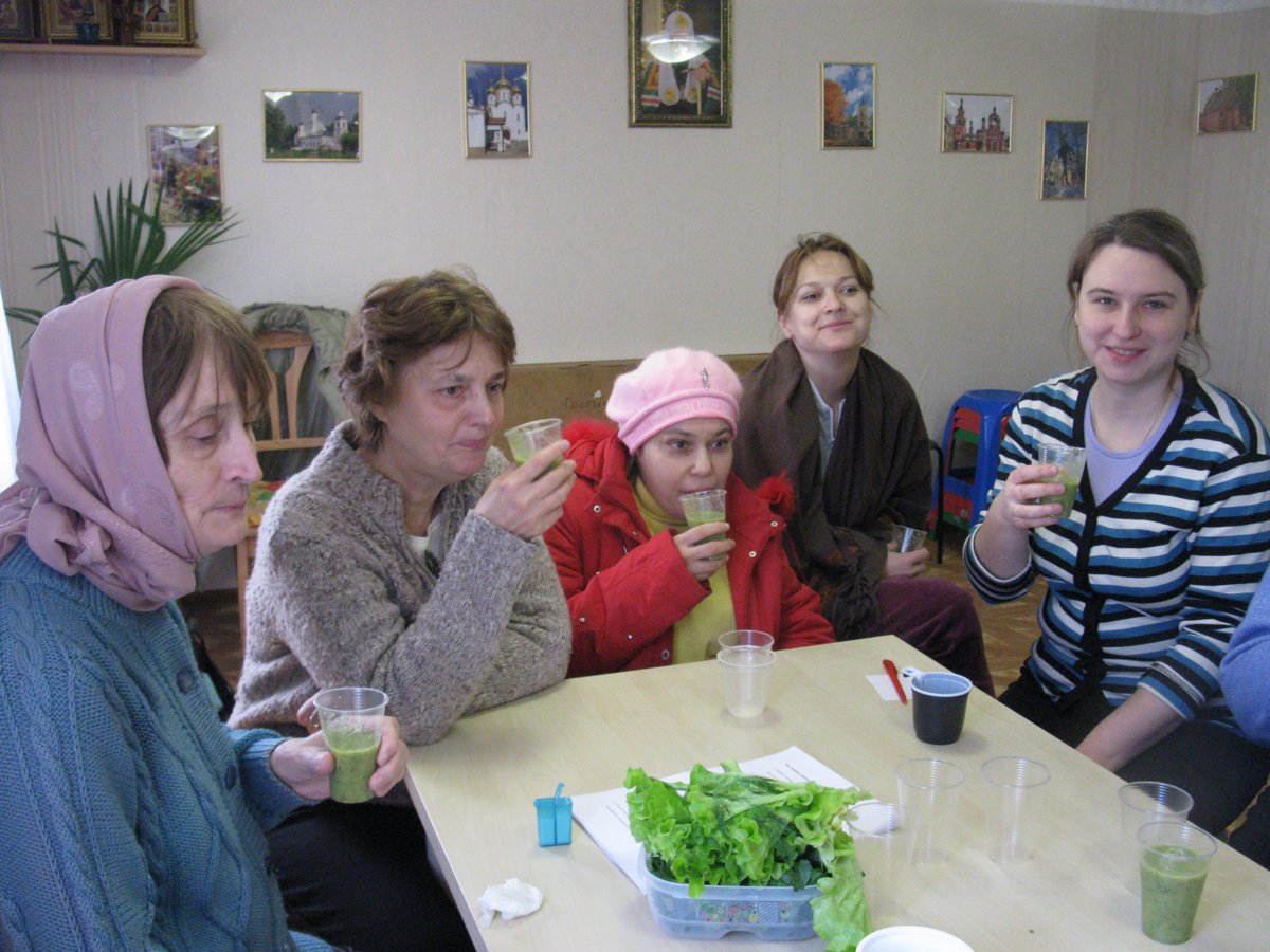 Во второй части занятия, посвященной здоровому питанию, мы знакомились с необычайно целебными напитками - зелеными коктейлями. Презентацию и дегустацию подготовила Ольга Литвиненко.