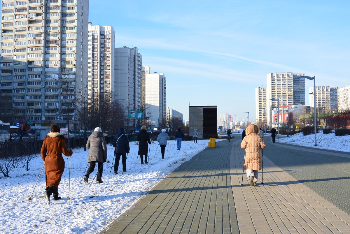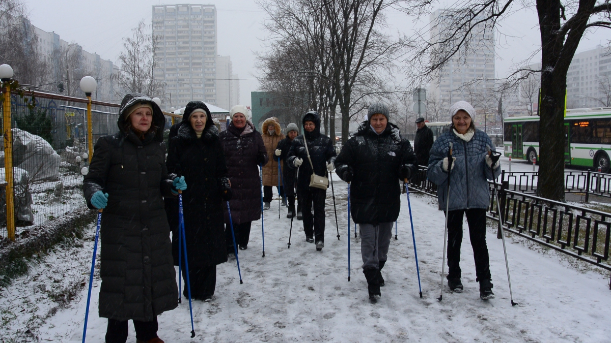 Двенадцать человек пожелали к следующему занятию приобрести настоящие палки для скандинавской ходьбы (мы закупили их централизованно по очень выгодной оптовой цене: фирменные итальянские палки стоимостью 1800 руб.) и на следующее занятие пришли уже по-настоящему экипированными. Позанимавшись в гостиной храма в течение часа гимнастикой динамических напряжений со всей группой здоровья, любители скандинавской ходьбы пошли тренироваться на Строгинский бульвар.