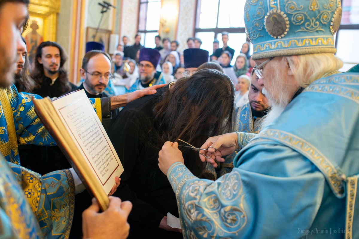 Затем епископ постригает крестообразно волосы в знак покорности Церкви. После этой молитвы чтецы облачаются в особые одежды — малые фелони.