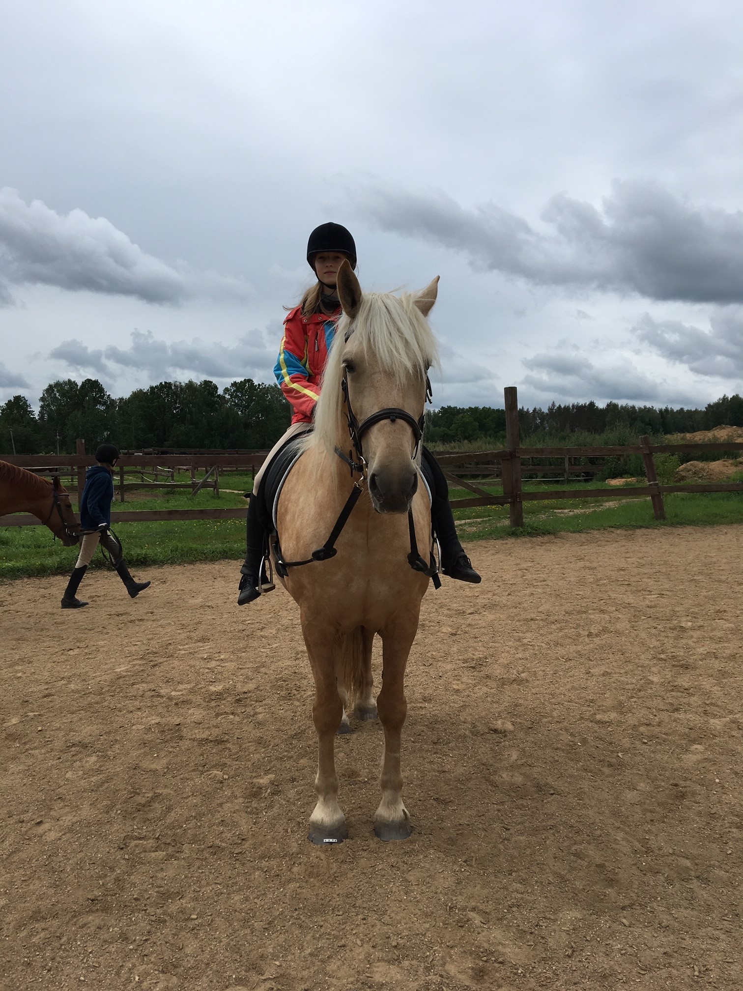 Маша Доронина 12 лет:  Тренировки на лошадях помогают мне быть сильнее и не бояться лошадей. Еще мне нравиться на занятиях  это сами лошади, чистить их и седлать. Из лошадей мне очень нравится Мэри и Деметра.