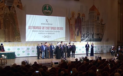20 мая 2021 года в Зале церковных соборов кафедрального соборного Храма Христа Спасителя состоялась X церемония избрания и награждения лауреатов Патриаршей литературной премии имени святых равноапостольных Кирилла и Мефодия.