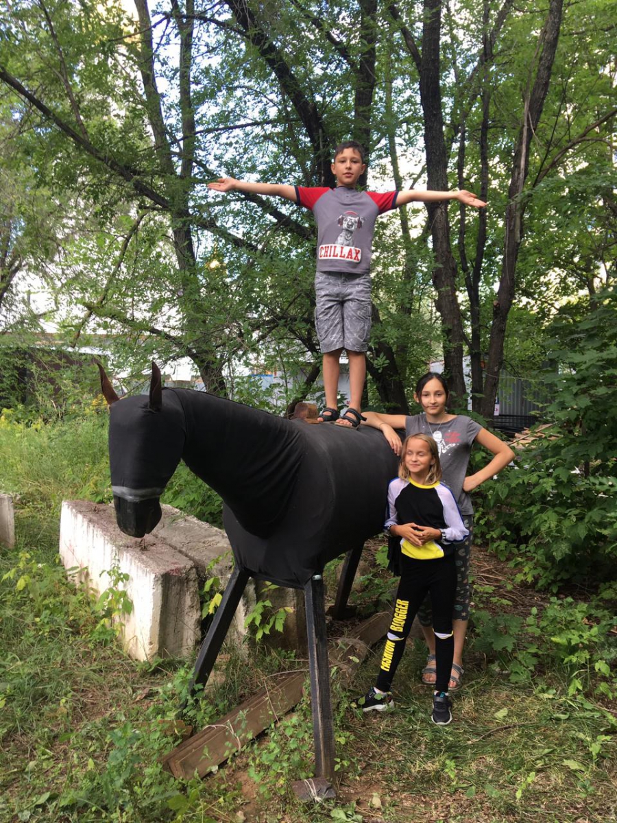 Лето 2021 года. Прогулки и тренировки. Новые знакомства и старая дружба. С утра на плацу 35 по Цельсию. К обеду уже 38. Дети в мокрых футболках и даже у лошади нет сил. Походы на речку с конями и купание всех участников тренировки из под шланга. Полевые дороги и лесные тропы. Кусючие оводы и безконечная мошкара на пастьбе. Старшие воспитанники уже помогают с малышами. Малыши смешные и озорные. Всё не расскажешь. Смотрите фотографии. Лето было!