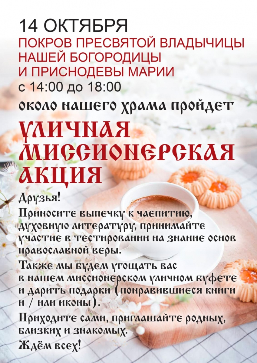 Суббота, 14 октября — Покров Пресвятой Владычицы нашей Богородицы и Приснодевы Марии