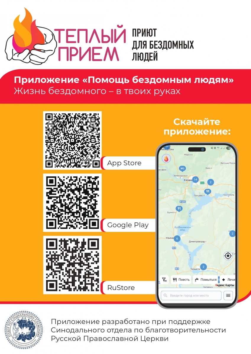 По благословению Святейшего Патриарха Московского и всея Руси Кирилла создано мобильное приложение «Помощь бездомным людям».