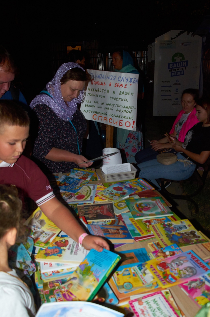 В связи с этим во дворе храма была организована раздача игрушек и книг. Дети с радостью выбирали понравившиеся экземпляры.