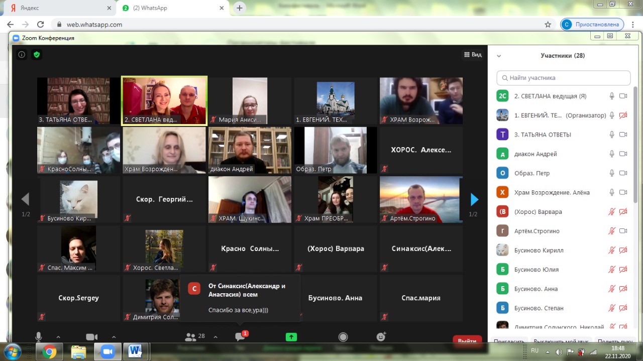 Традиционно это мероприятие проходит в последние выходные перед Филипповым постом в формате конкурса коротких кино, снятых участниками молодежных объединений. Наш клуб, кстати, дважды являлся победителем в этом фестивале с видеозарисовками “Три Анны” и “Ойся, ты Ойся!”. В этом году в связи с требованиями по ограничению распространиния коронавируса “Воздушному шару” пришлось “подняться в воздух” виртуально, а всем командам выйти и пообщаться друг с другом он-лайн на основе платформы zoom. Это наложило свой отпечаток. Общество меняется в сторону цифровизации. Zoom конференции и удаленное общение группами стало нормой, от которой православная молодежь не отстает как бы ни хотелось кому-то из православных ассоциировать духовную жизнь исключительно с удаленностью от цивилизации, использованием света свечей и с чтением старинных бумажных книг.