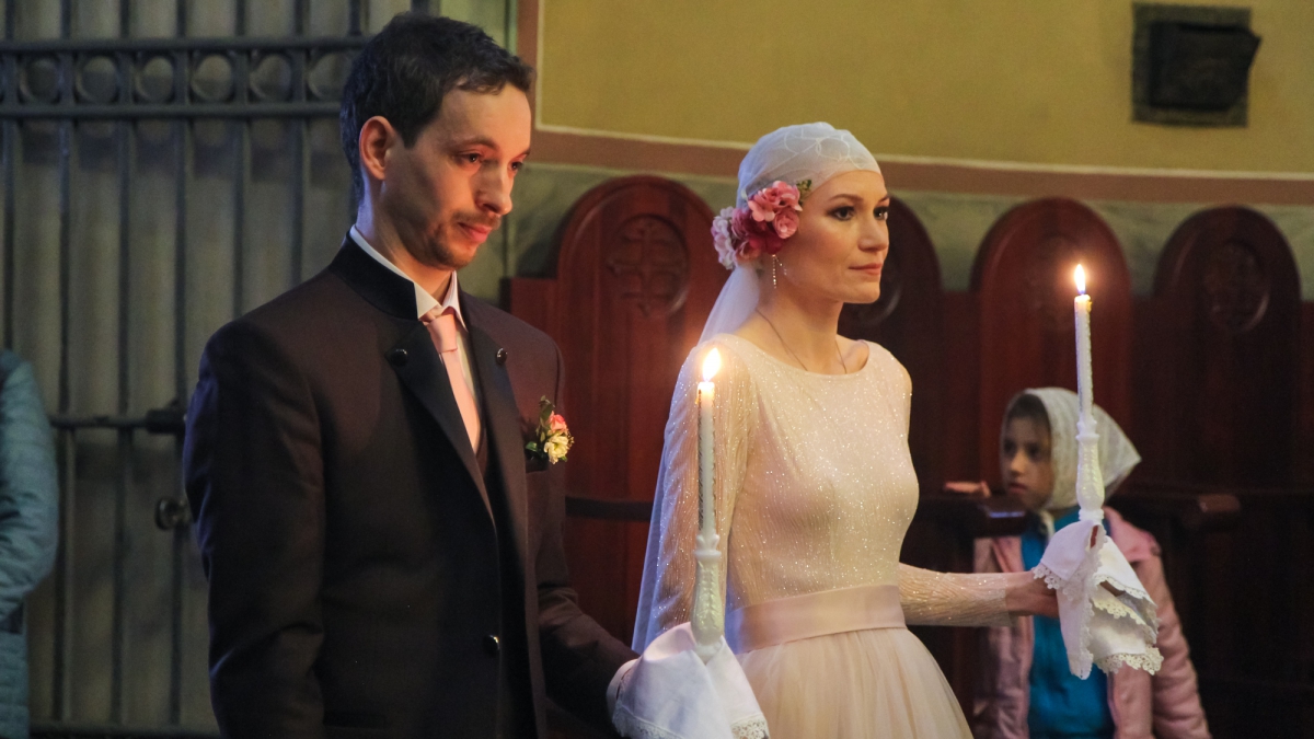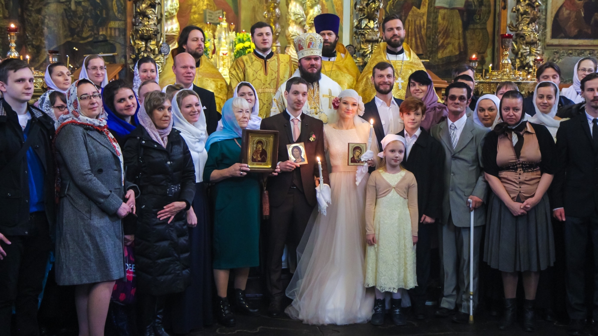 А после Литургии Владыка в сослужении священников и диаконов Северо-Западного викариатства совершил таинство венчания двух членов молодежных объединения Алексея и Юлии. Желаем им многих и благих лет совместной жизни!