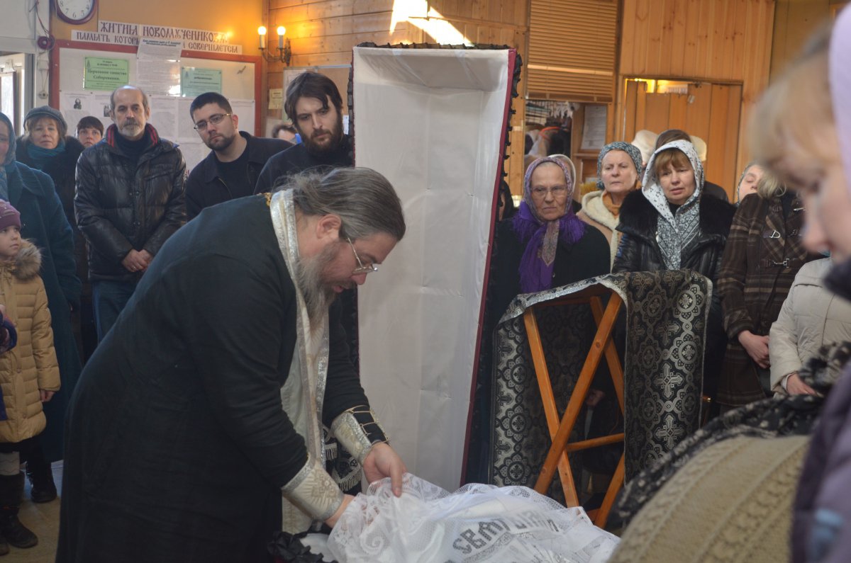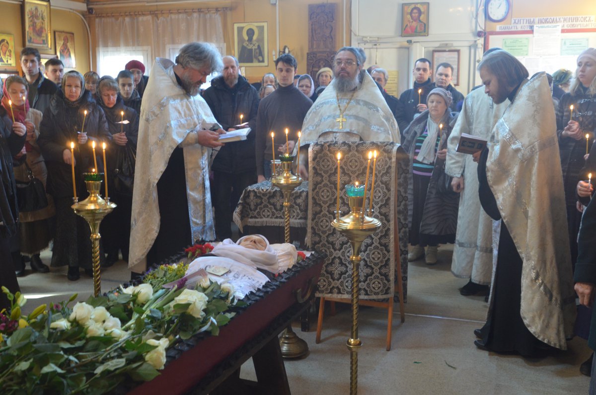 в прошлое воскресение, 9 марта, в день Торжества Православия в нашем храме было совершено соборное отпевание постоянной прихожанки нашего храма - р.Б. Людмилы. Раба Божия Людмила сознательно взяла на себя подвиг юродства, такой редкий в современном мире, отчего внешне создавала впечатление психически нездорового человека, за что часто была гонима, но при этом всех кто ее гнал всегда прощала. По словам настоятеля нашего храма протоиерея Георгия Крылова, произнесенным им после отпевания, всепрощение - это своего рода пробный камень юродства, юродивый после смерти либо во святых, либо нет. Отец Георгий первым прося прощения у почившей Людмилы выразил уверенность, что вся община нашего храма, кто знал Людмилу лично, смогут почувствовать если она имеет дерзновение перед Богом. По древней традиции с усопшим прощаются следующими словами: раба Божия Людмила, прости нас за все, чем согрешили против тебя в жизни сей, а тебя за все Бог простит и благословит! Аще стяжала дерзновение перед Богом, помолись у Престола Божия о нас грешных!