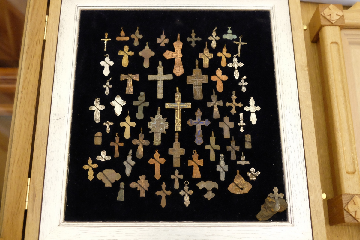 — Тут у меня два аргумента, — отвечает отец Валериан. — Один даёт Нева, вымывая на берег нательные кресты и иконки погибших на переправе солдат. Один из наших прихожан собрал их и оформил в багетную рамку. Получился как бы мощевик из крестов. Я говорил со многими ветеранами, когда они ещё были живы и приезжали сюда почтить память своих товарищей. Они вспоминали, как бабушки водили их детьми в храм и причащали. Поэтому, думаю, получив эту добрую закваску, многие из них были верующими людьми. А другой аргумент я нашёл в Евангелии: «Нет больше той любви, как если кто положит душу свою за други своя» (Ин. 15:13). Ведь они шли в атаку и погибали под шквальным огнём, понимая, что за ними умирает от голода целый город. Они ради этих людей жертвовали собой. В их сердцах горела та самая Христова жертвенность. И именно благодаря ей была одержана наша Победа над жестоким и великолепно оснащённым врагом. Какие бы они ни были — всё равно эта жертвенность, этот подвиг всё освящает. А то, что кто-то был коммунистом или комсомольцем — это Господь там уж сам решит, как кого помянуть. Наше дело за них молиться.
