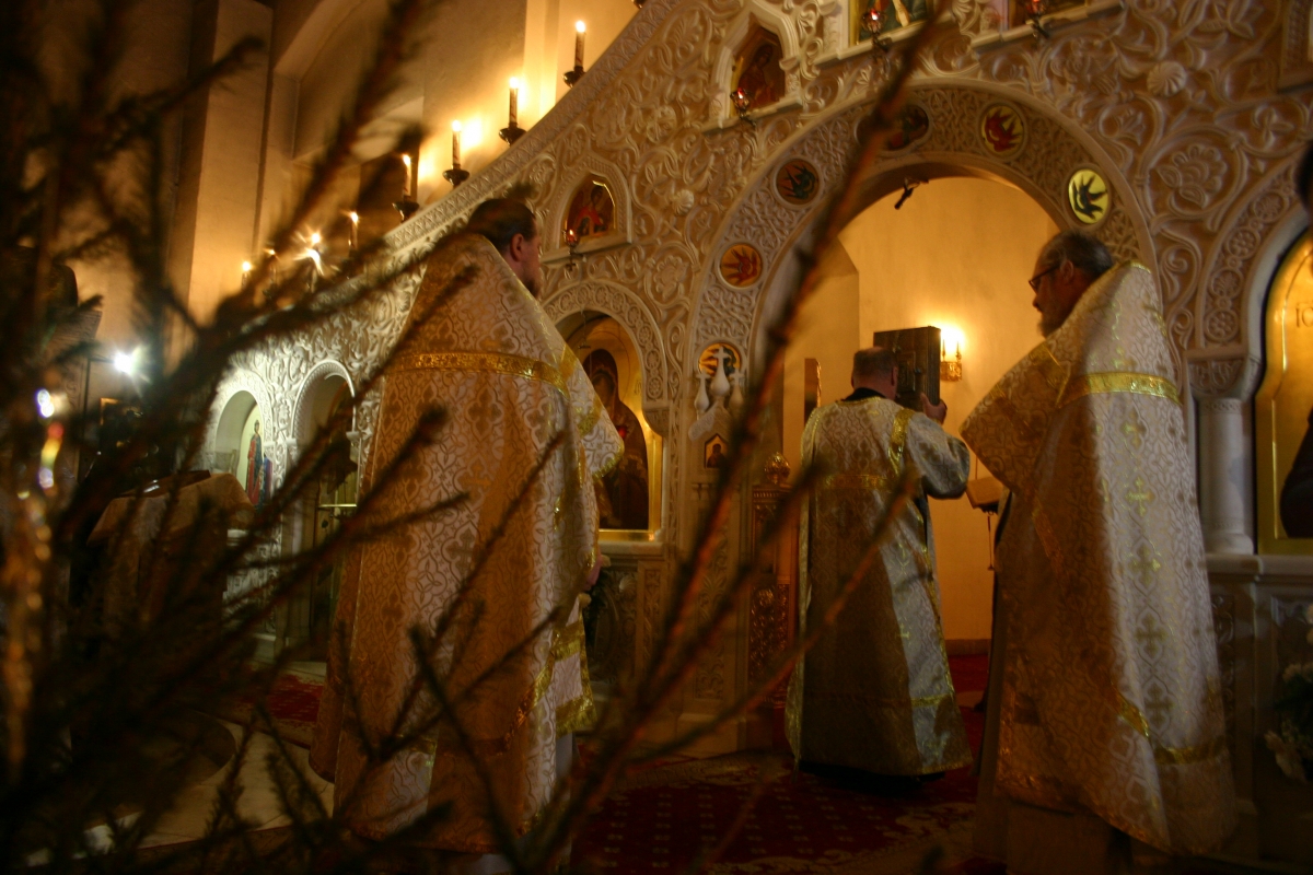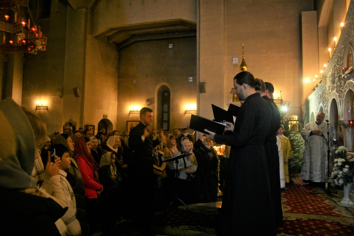 В ночь с 6 на 7 января, в праздник Рождества Христова, в нашем храме была совершена ночная Божественная Литургия. В конце Литургии было прочитано Рождественское послание Святейшего Патриарха Московского и всея Руси Кирилла. Во время богослужения пел мужской хор под управлением Олега Гуськова, а также детский хор под управлением Марии Январевой. Также по запричастном стихе мужкой хор исполнил некоторые богослужебные песнопения из готоваящегося Рождественского концерта, который состоится 8.07. в 15:00.