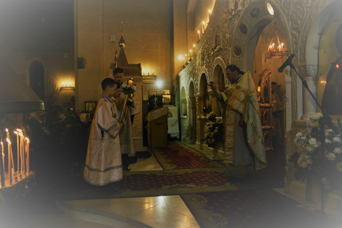 Утром в 9:00 была совершена также и поздняя Литургия. Во время богослужения пел Византийский женский хор.