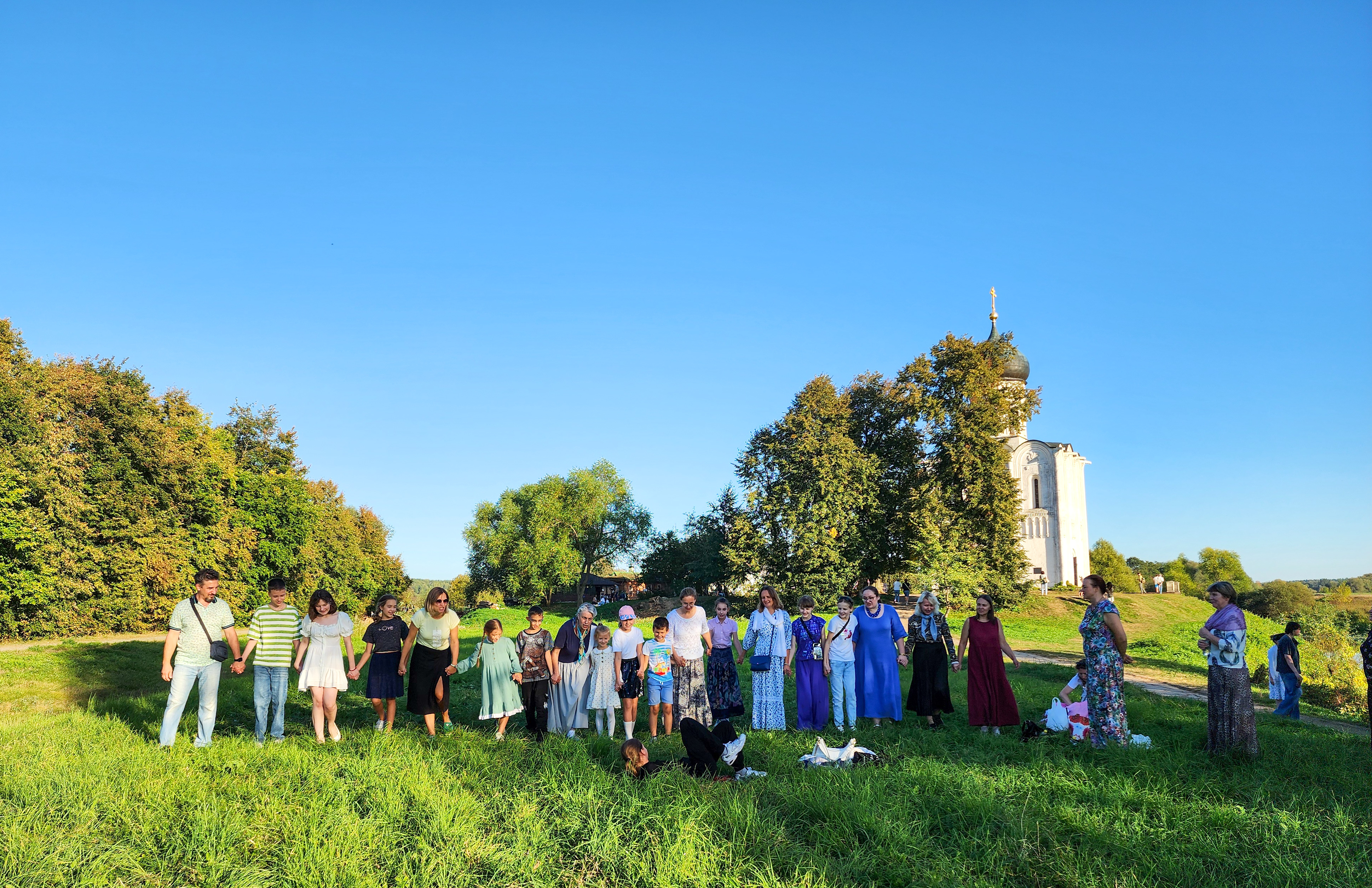 С тяжёлым чувством несправедливости по отношению к Князю и его роли в образовании могучего Владимиро-Суздальского княжества, мы двинулись в отдельное небольшое паломничество к Храму Покрова на Нерли, ещё одному детищу Великого Князя Андрея Боголюбского. Сквозь заливные луга нам предстоял путь в полтора километра. У Храма экскурсовод рассказала историю его строительства, архитектуры и назначении во времена княжения Андрея Боголюбского.