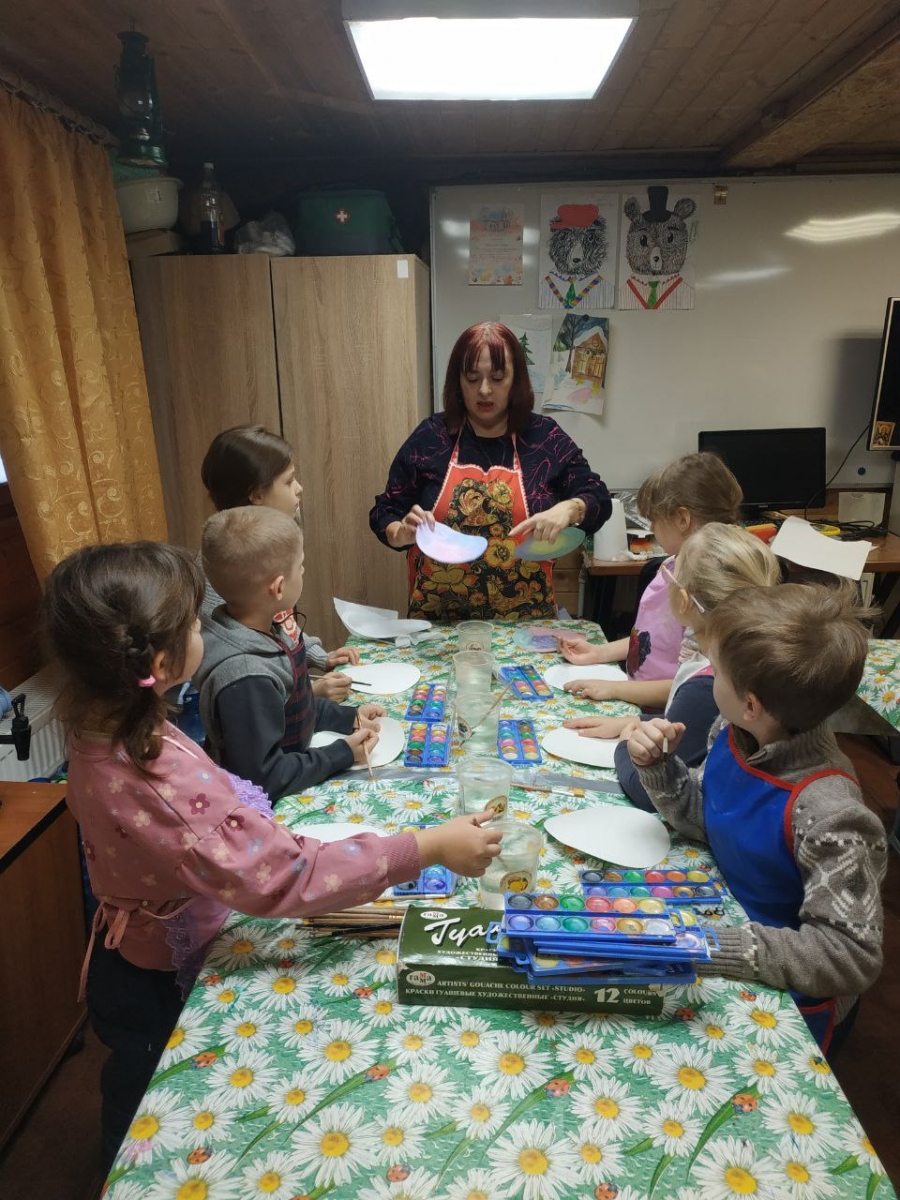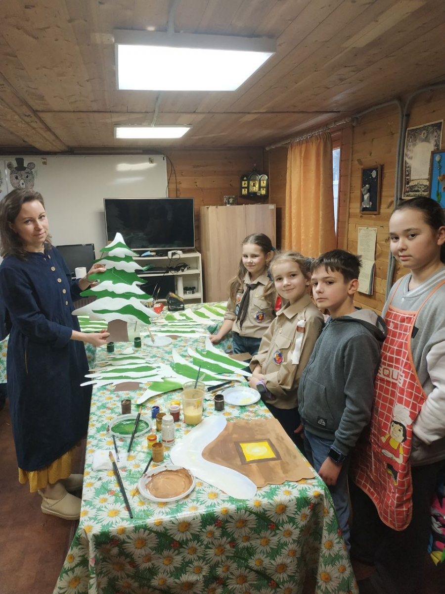 Творческий субботник (27 декабря). Прошла замечательная объединяющая акция «Коллективная подготовка концерта». Дети 6-11 лет вместе с родителями под руководством педагогов создавали волшебные декорации. Благодаря их усилиям на полотнах ожили заснеженные избушки, пушистые ели, сверкающие шары и старинные фонарики.