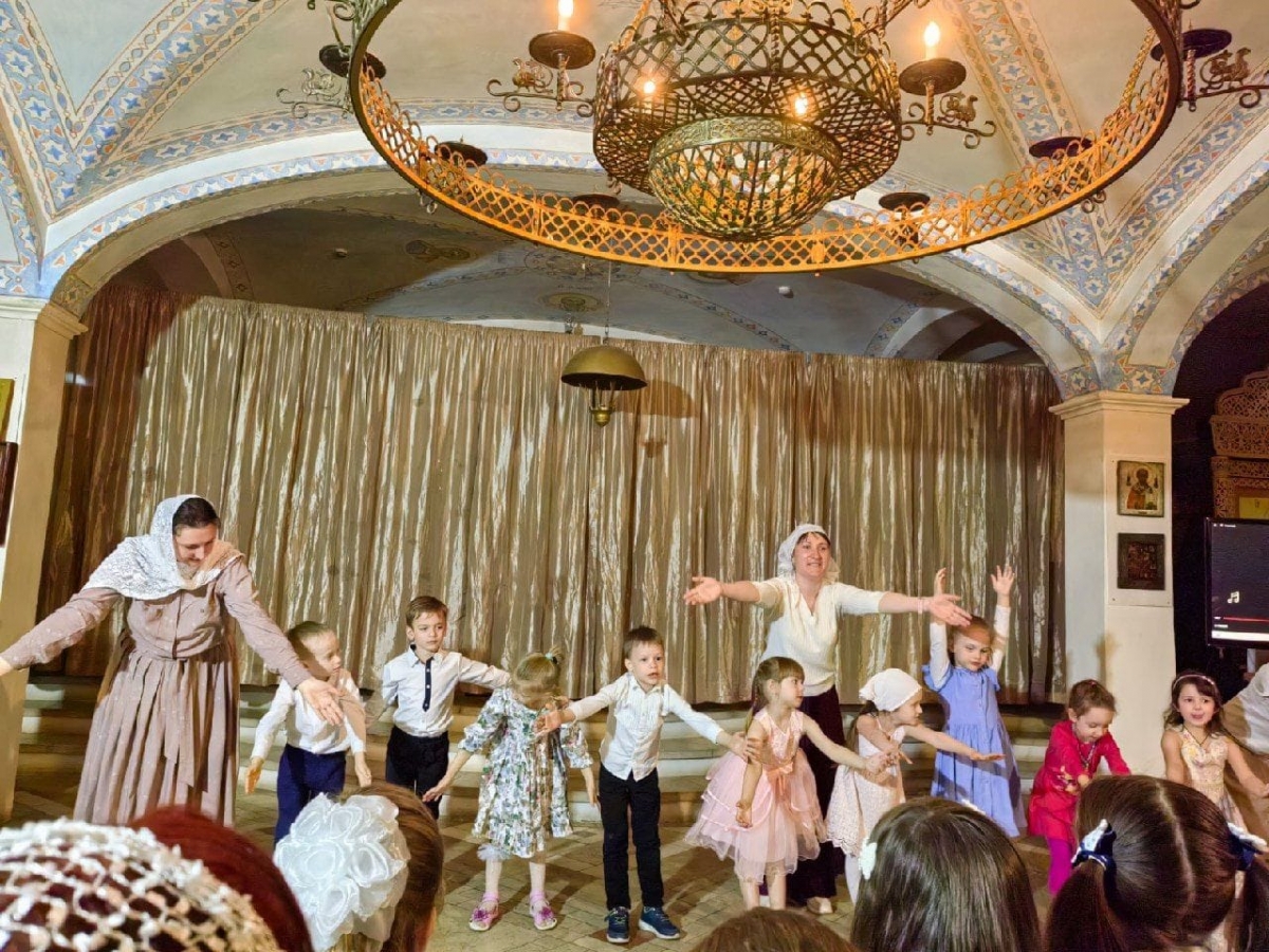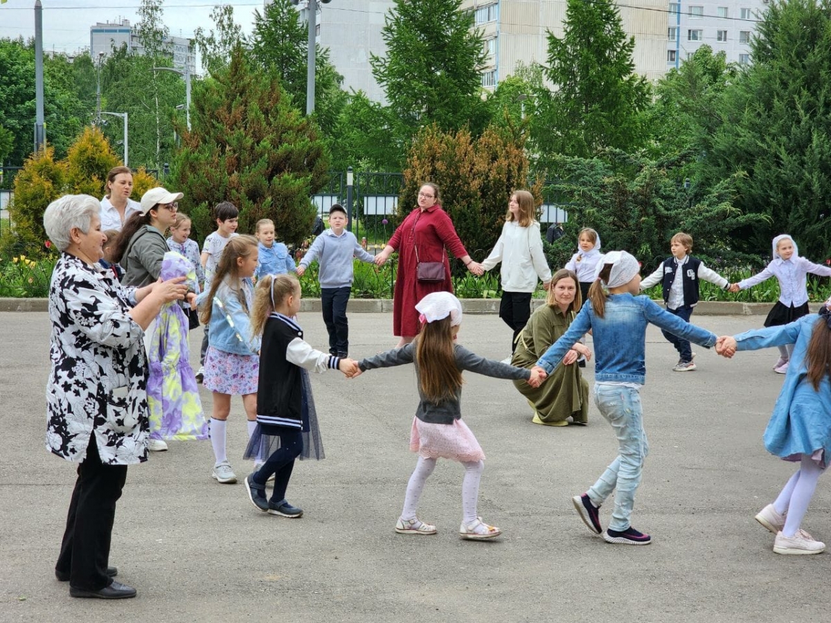 До концерта на площадке храма педагог Воскресной школы Васильева Злата Станиславовна организовала народные игры с детьми,