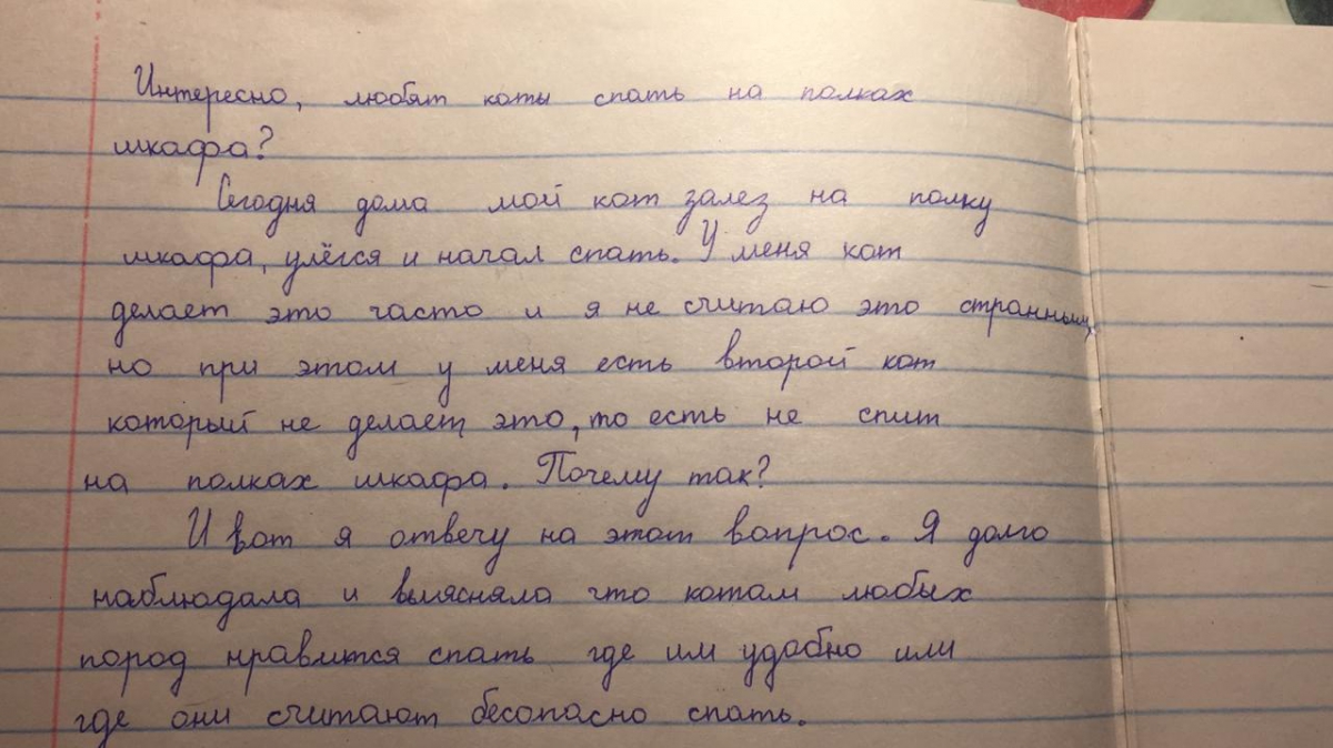 10 - Заметка Беловой Маши "Интересно, любят ли коты спать на полках шкафа?":