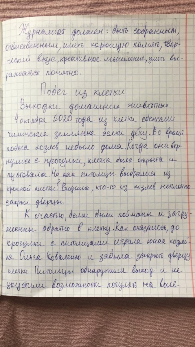 С октября в нашей воскресной школе начала работу "Школа журналистики". На первом занятии (которые проводятся раз в две недели) ребята обсудили, какими качествами должен обладать настоящий журналист, узнали определение журналистики и познакомились с первым жанром - заметкой. В качестве домашнего задания юные журналисты написали небольшие заметки о происшествии в храме и дома. Вот их первые "опусы":