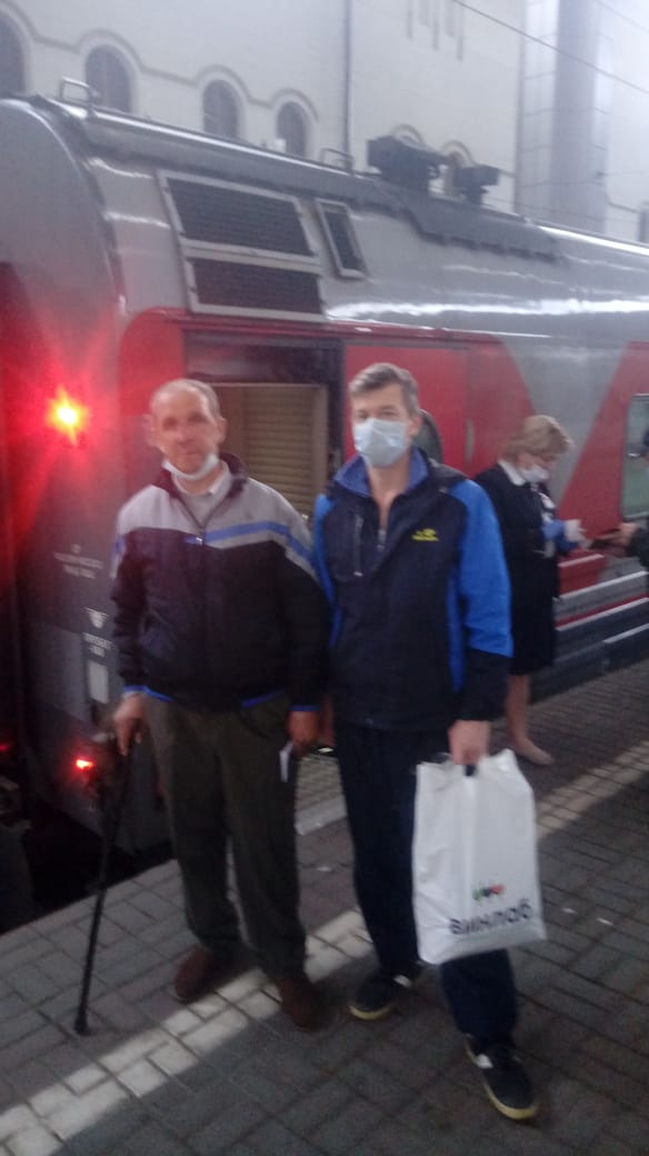 В Москве в 5 утра его встретил наш волонтер и провел с ним весь день в зале ожидания до отправления дальше к месту проживания его супруги. К отъезду подъехал еще один волонтер и привез продукты, собранные нашими многодетными прихожанами, а так же заботливо передал Сергею домашнюю еду с собой.