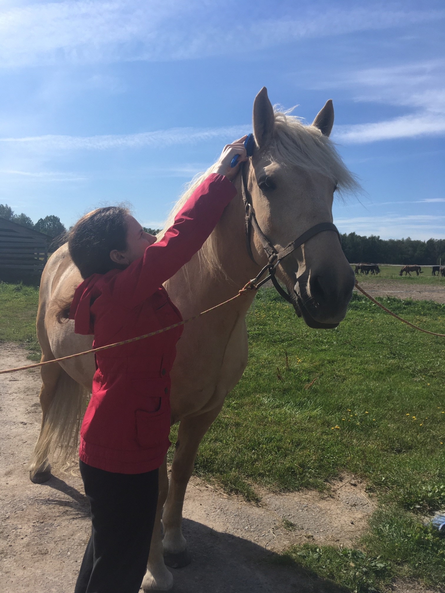 А после дошагивать к дому мокрую лошадь от которой идет пар и греть озябшие руки об теплую рыжую шею там где она сухая- под гривой. Однако, добравшись до конюшни , ребятам приходиться думать не о себе а о своей лошади. Ее надо расседлать, растереть пучком сена, почистить копыта от камней и грязи, накрыть попоной и угостить морковкой. И только после этого можно отправляться в тепло самим, захватив уже протертое седло и уздечку.