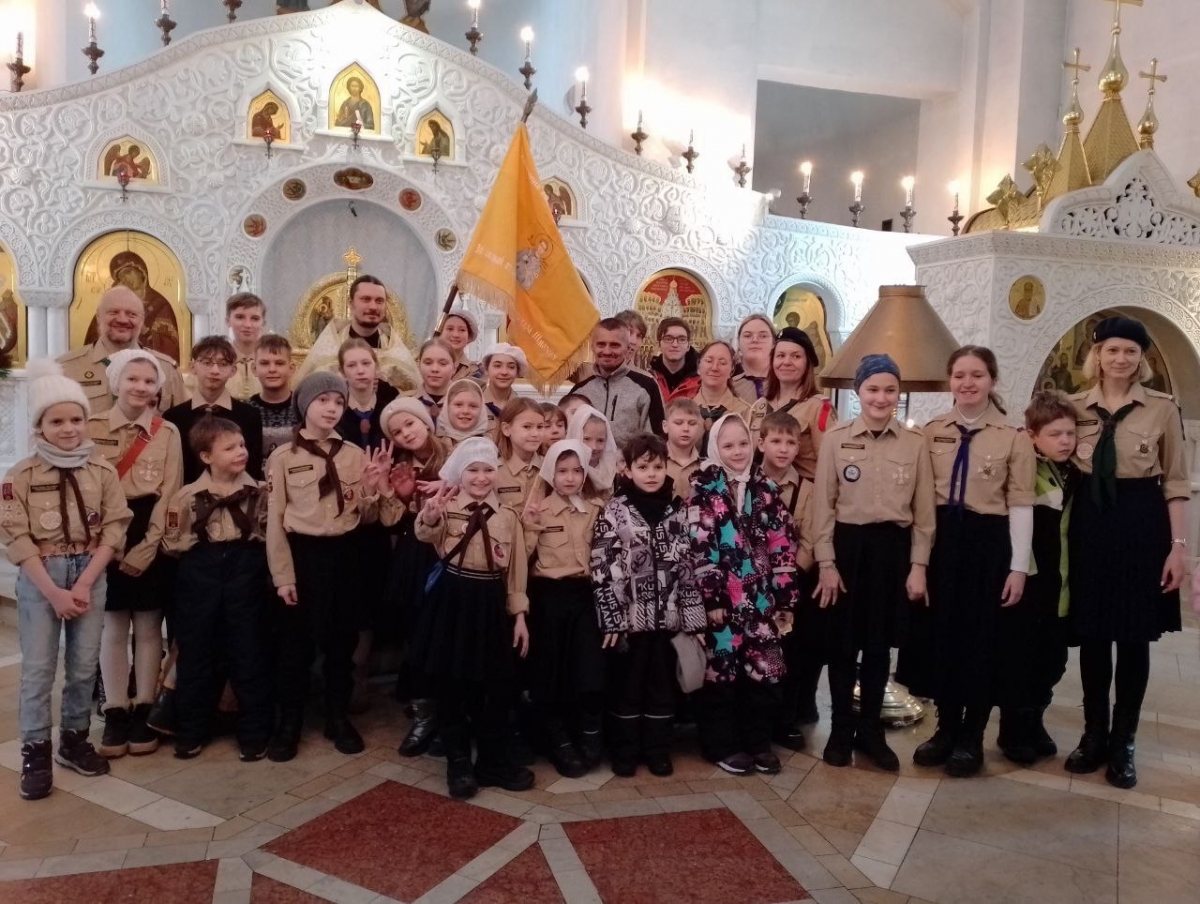 15 февраля в нашем храме состоялось торжественное освящение знамени скаутского отряда, действующего при нашей Воскресной школе.