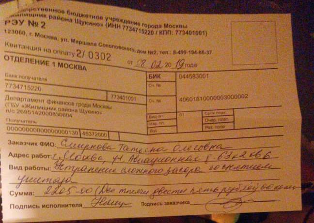 | Квитанция долг | Квитанция засор | Квитанция унитаз |