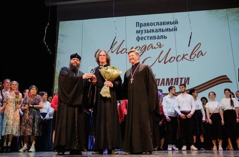 Архиепископ Егорьевский Матфей совместно с протоиереем Кириллом Сладковым наградили участников молодежных хоров памятными кубками.