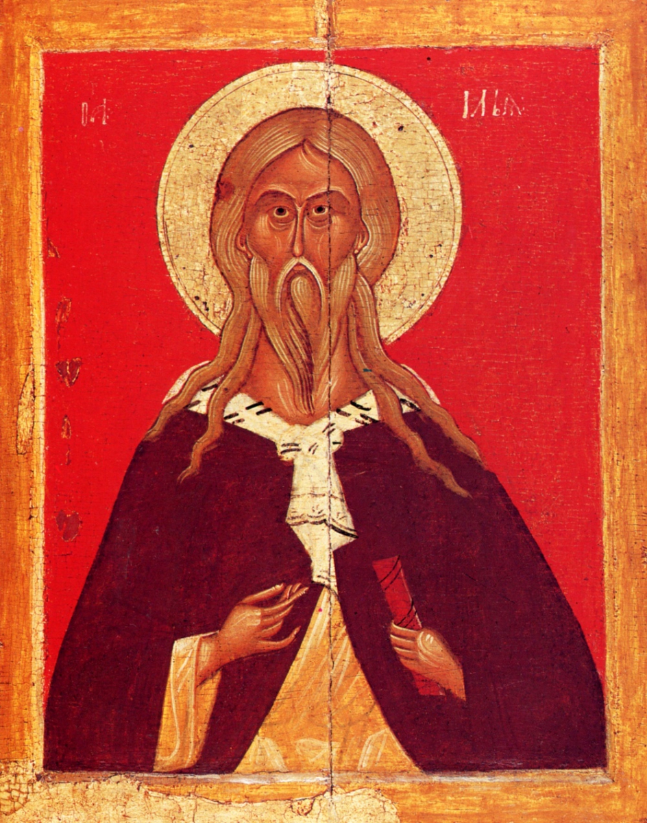 Пророче и провидче великих дел Бога нашего,/ Илие великоимените,/ вещанием твоим уставивый водоточныя облаки,// моли о нас Единаго Человеколюбца.