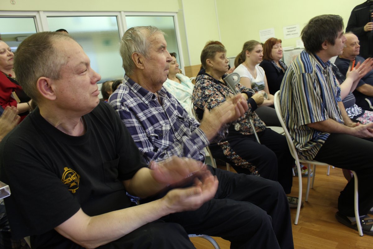 15 апреля все повторилось в двух других корпусах больницы. Здесь тоже состоялось два концерта. На этот раз вместо дуэта Маши и Алены выступали другие исполнители, в их числе Людмила Щербакова. Ее творчество хорошо знакомо прихожанам храма, диск с ее чудесными песнями, стихи и музыку к которым она пишет сама, по благословению настоятеля храма протоиерея Георгия Крылова был в продаже в иконной лавке храма Новомучеников и исповедников Российских. И в больнице Людмила своей песней «Помолись за меня сестра» заставила зрителей плакать, а песней «Кони» улыбаться.