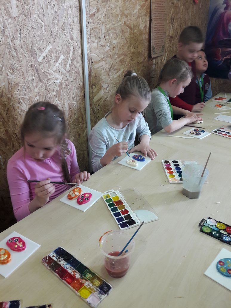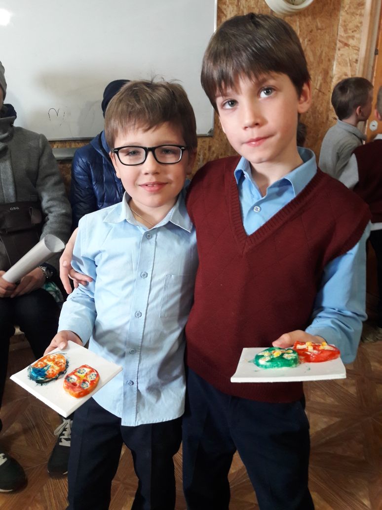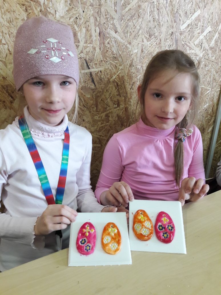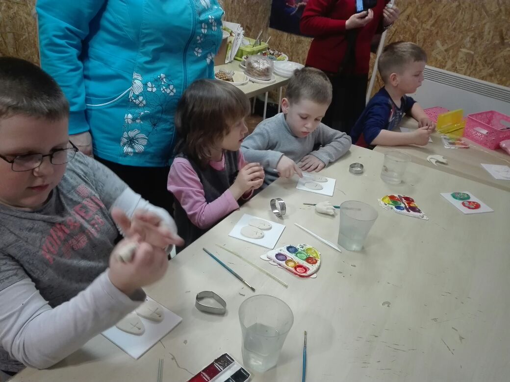 После экскурсии по Храму группу привели на мастер-класс по лепке из соленого теста, пока дети готовили тесто, разминая его в руках, о. Илия показал интересную презентацию и рассказал детям о значении Воскресения Христова для нас. Общественный методист нашего Храма Злата Станиславовна Васильева провела мастер-класс, на котором дети вылепили из солёного теста очень красивые пасхальные яйца, которые с большим интересом раскрашивали!
