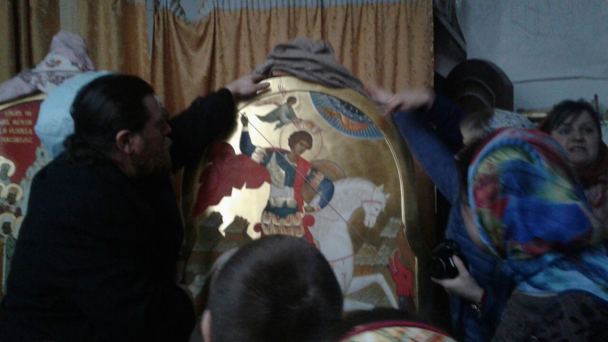 Далее группа проследовала в верхний Храм, зашла в иконописную мастерскую, где увидела весь трудоемкий процесс написания икон. Подробно и близко детишки рассмотрели икону Св.Георгия Победоносца, покровителя Москвы, узнали из чего делают настоящие краски и даже посмотрели баночки с ними.