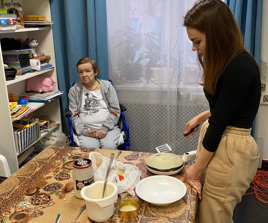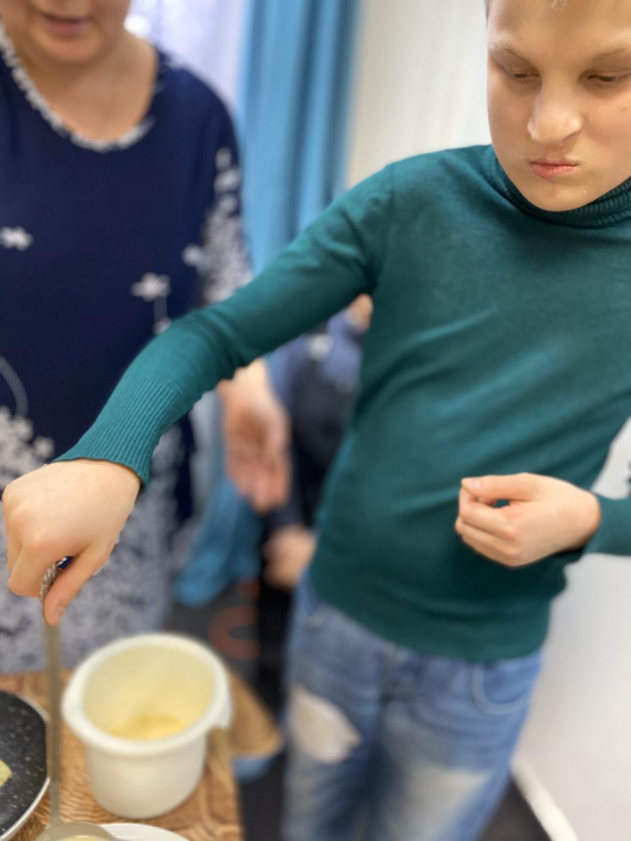 Все желающие и бабушки и дети могли почувствовать себя настоящими поварами. Блины поглощались со сметаной и вареньем прямо с блинницы. Ребята устроили импровизированный самодеятельный концерт. Ксюша и Настенька рассказали стихи, приуроченные ко дню Защитника Отечества. Михаил прочитал стихи собственного сочинения о любви. Тамара Николаевна вспомнила, что она была преподавателем музыки и исполнила нам прекрасное произведение Моцарта. Артем, Никита, Рустам и Антон рисовали открытки.