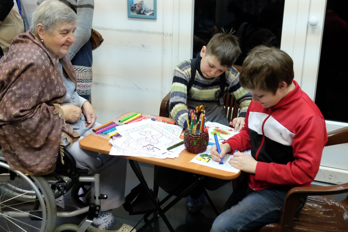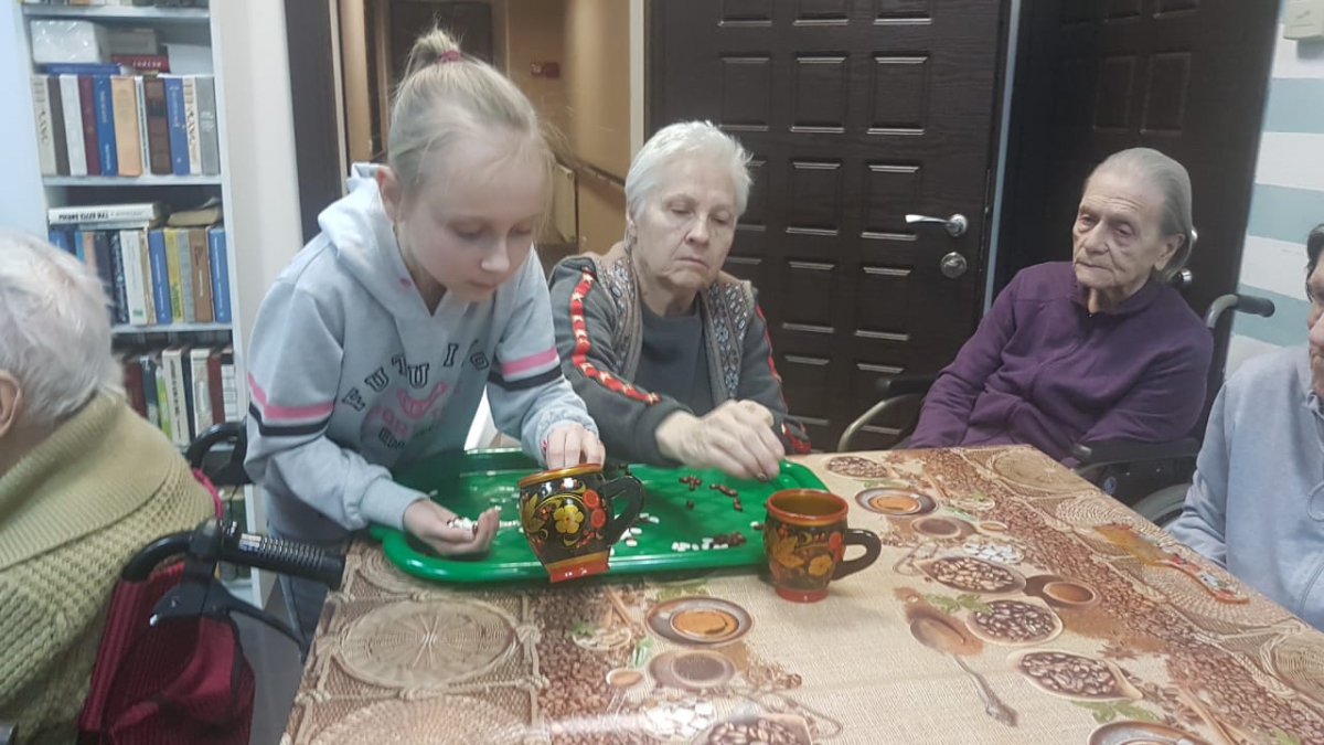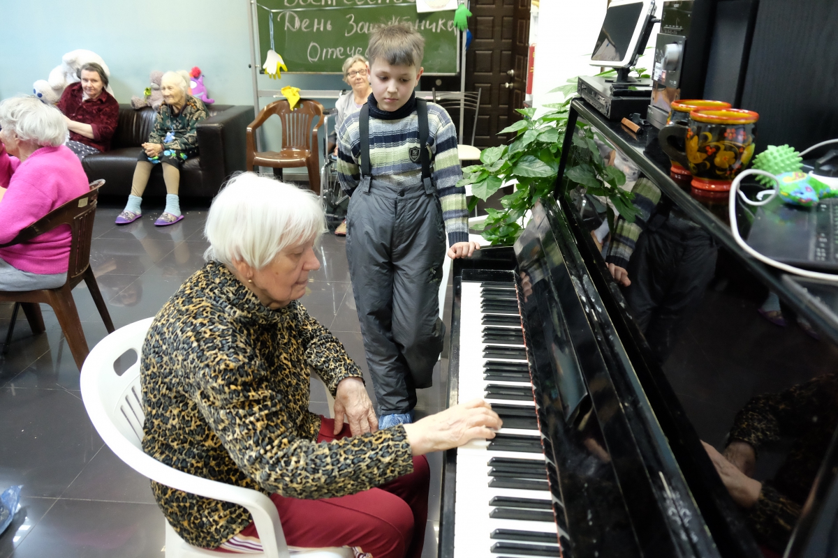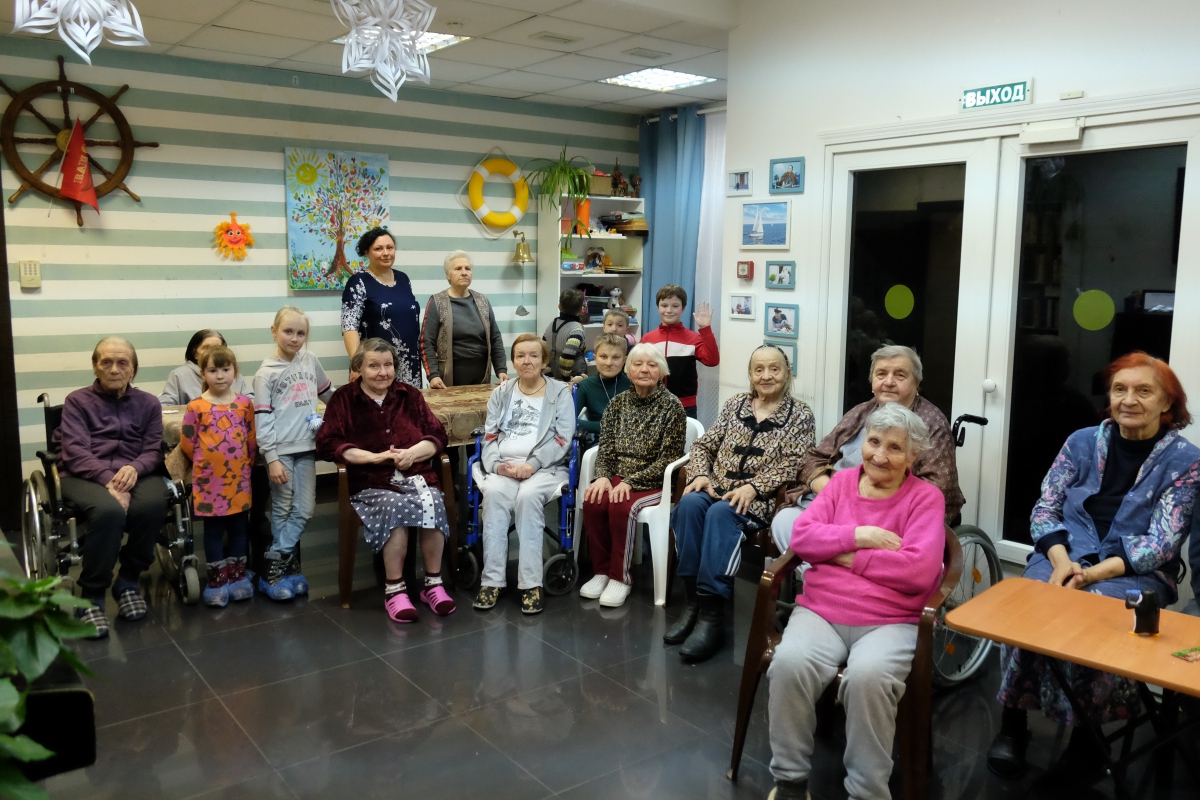 В воскресенье 23 февраля ребята из детского клуба "Школа тетушки Совушки" совместно с волонтерами из общественной организации «Путь познания» ребята из детского клуба снова посетили пансионат для пожилых людей "Долголетие".