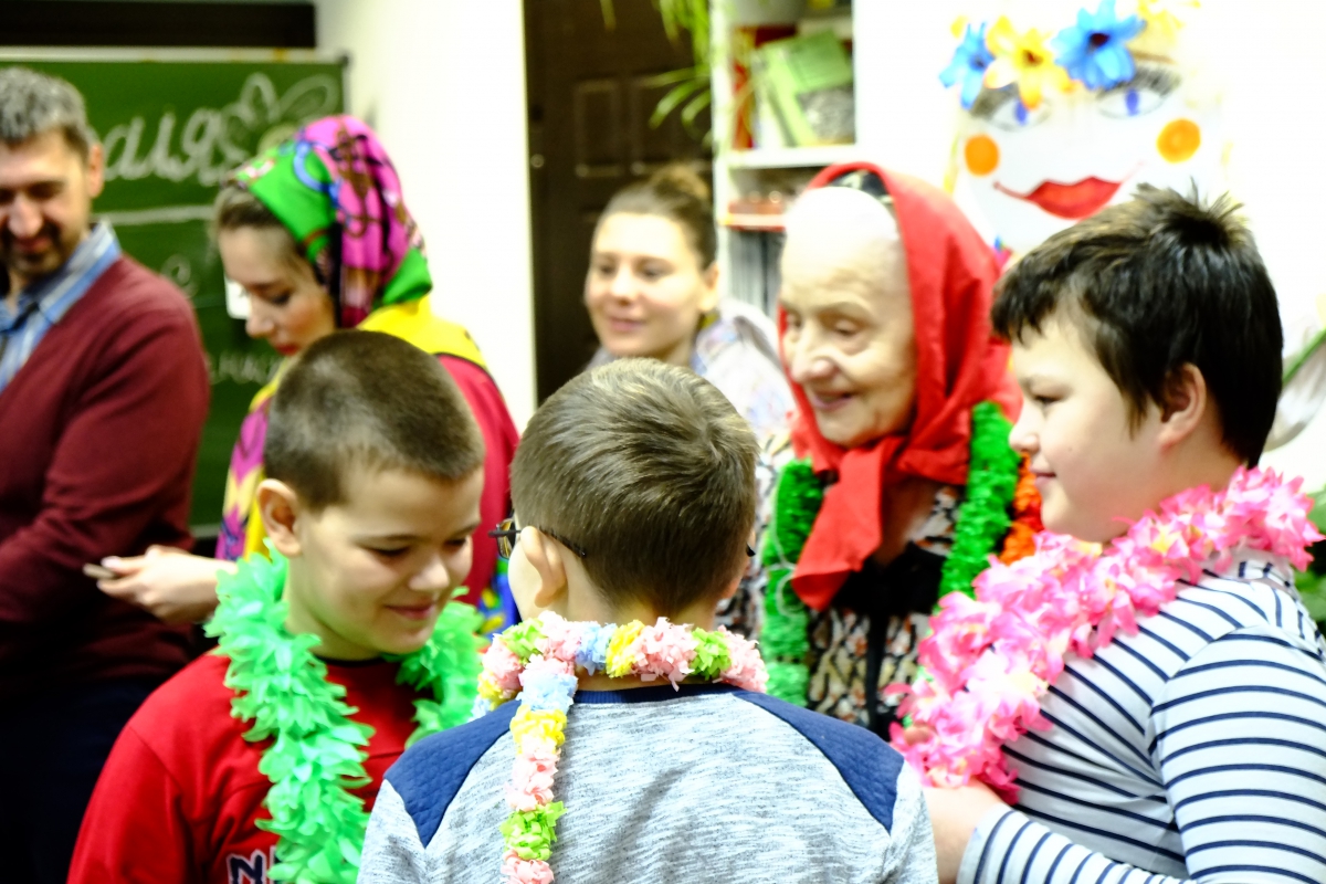 Пели, плясали, играли и отгадывали загадки. Было чучело и подарки для всех присутствующих. Ели блины, приготовленные прихожанкой Храма Новомучеников и исповедников Российских в Строгино, матушкой Валентиной. Поздравляли и дарили именные открытки всем мужчинам. Весело водили хоровод во дворе пансионата и проводили эстафеты. После проводов гостей в доме воцарилась тишина "тихого часа".