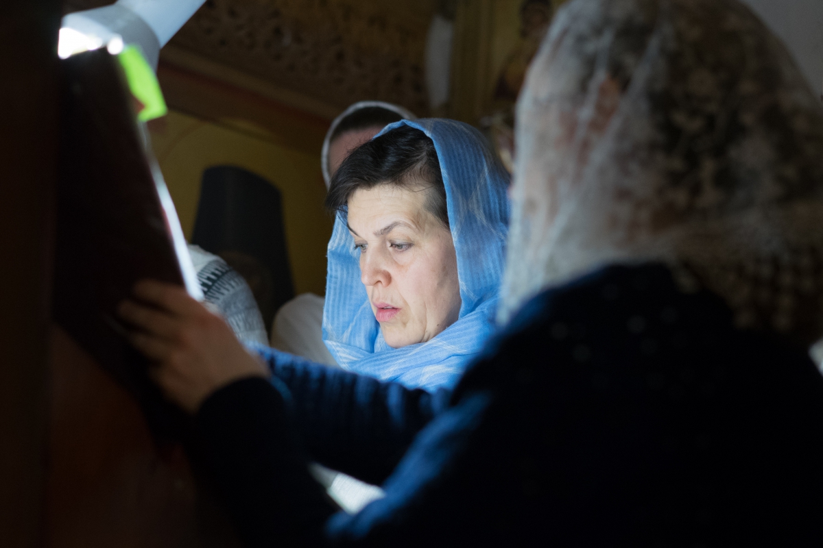 За богослужением пел женский византийский хор храма, под руководством регента Ольги Крыловой. После этого нижний храм был весь день открыт для верующих.