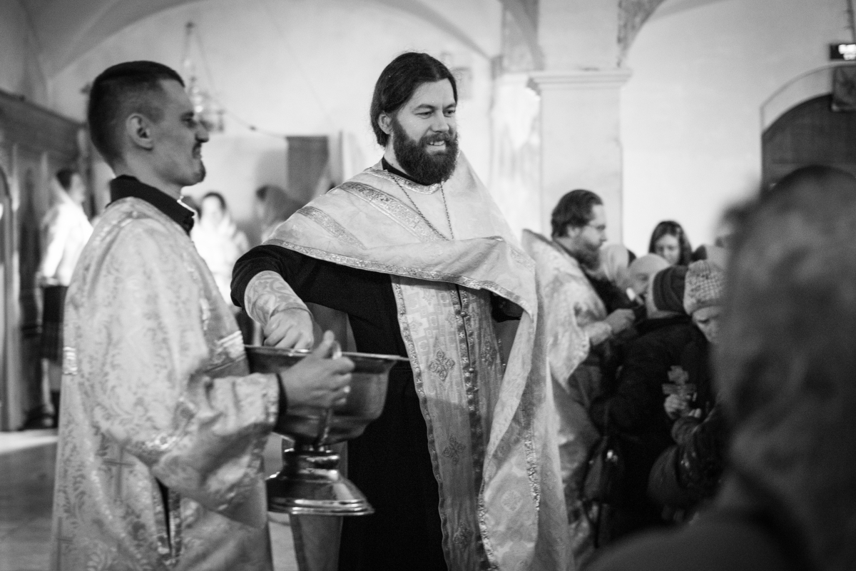 В 21:00 в нижнем храме единоверческая община нашего храма начала ночное праздничное богослужение, которое закончилось около семи утра Святым Причастием и освяшением воды.