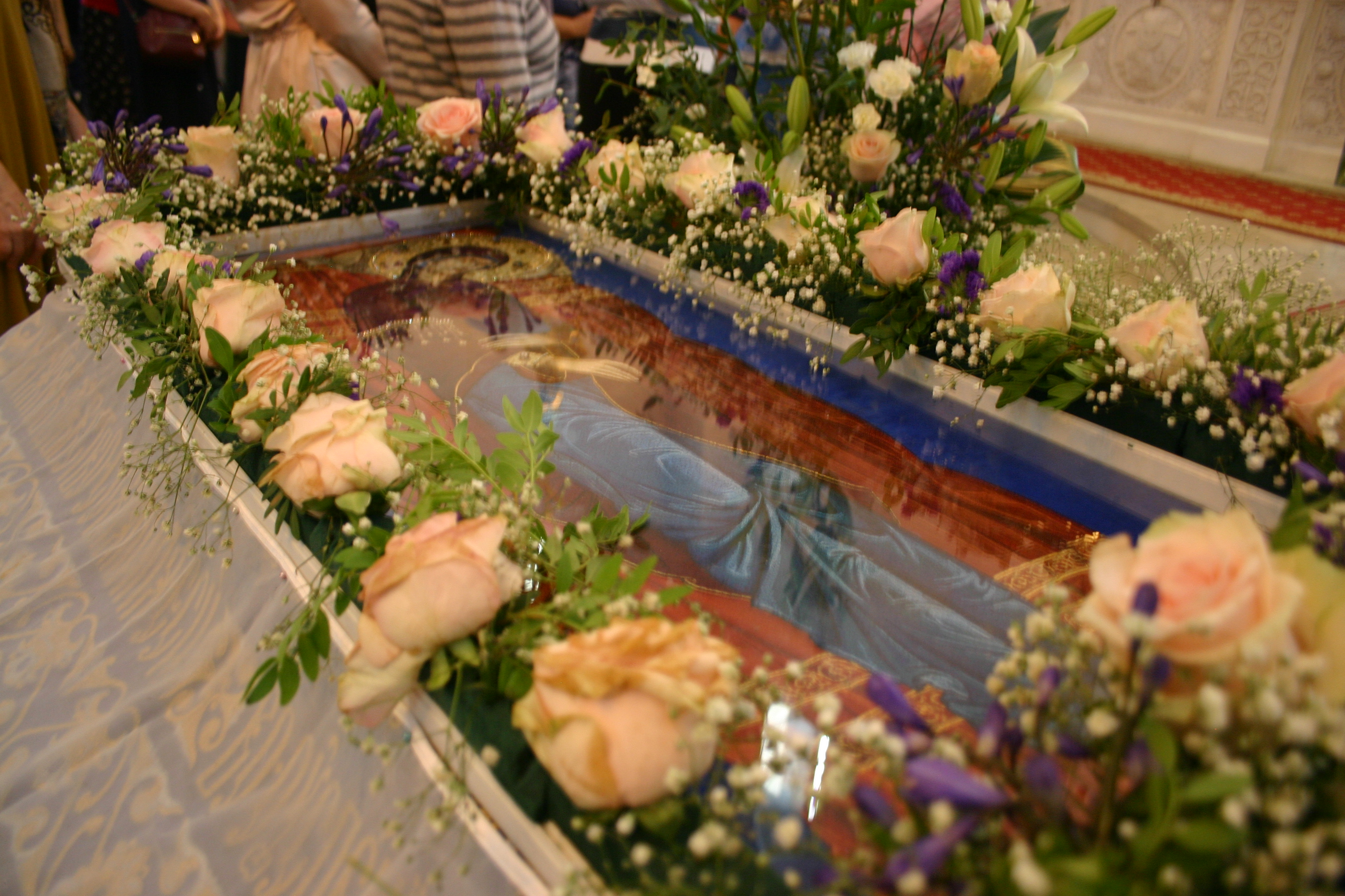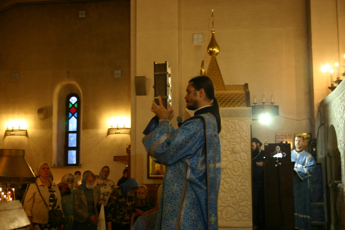 В праздник Успения, 28 августа, в нашем храме состоялась праздничная Литургия. Накануне было отслужено Всенощное Бдение, за которым в центр храма была помещена плащаница с изображением Божией Матери.