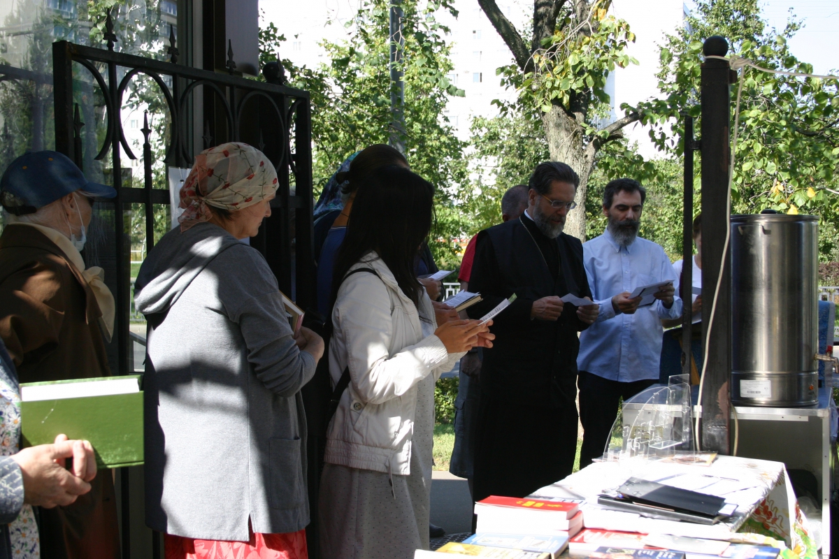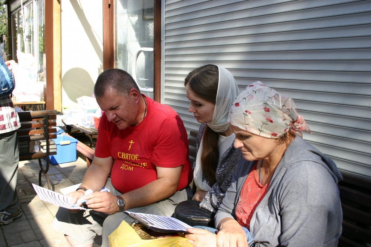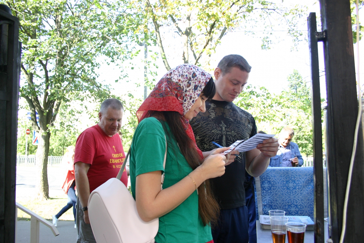 После Литургии, 28 августа, также была проведена традиционная Миссионерская акция. Погодв стояла солнечная и люди охотно общались с катехизаторами и волонтерами, выбирали книги и иконы. Волонтеры-девушки принесли на акцию свежую выпечку и радушно угощали всех подошедших.
