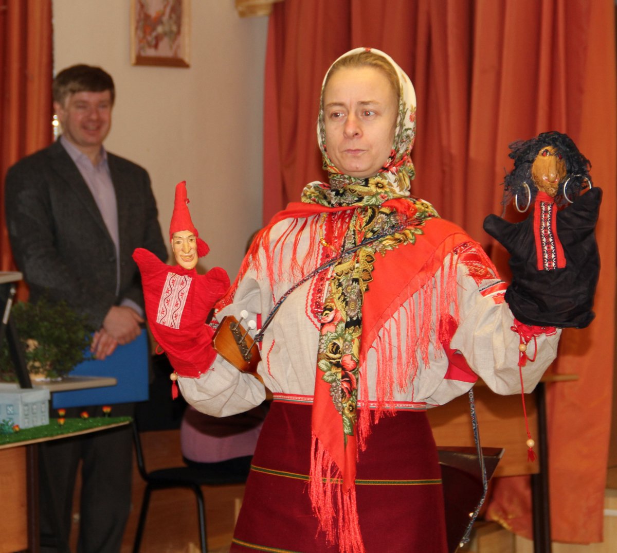 Прекрасным дополнением было выступление фольклорного ансамбля под руководством Демиденко Анны Павловны, хористы спели русские народные песни, песенно пожелали учителям и родителям с детками «Многая лета!», а потом для все неожиданностью стало появление петрушки, который всех под конец рассмешил. К сожалению, праздник подошел к концу, отец Игорь подарил ребятам шоколадки с добрыми пожеланиями, а также были подарены календари с православными праздниками.
